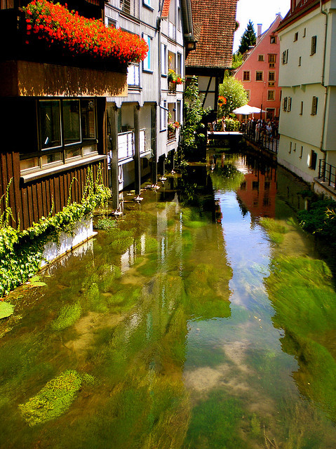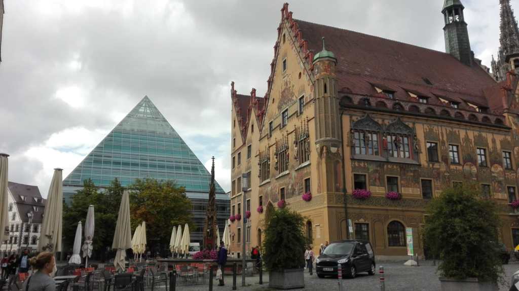 Je reprends la route plein est sous un ciel gris mais sans pluie et retrouve l’EV6 après avoir rejoint le Danube, fil conducteur et protecteur. La route empruntée jusqu’à Ulm n’est pas folichonne. Beaucoup de zigzag dans la plaine à travers les champs sans grand intérêt. Je fais tout de même une rencontre sympa dans un café de Ehingen où le patron, âgé de 68 ans, a vécu quelque temps en France et est désireux de parler français. Je fais étape à Ulm, très belle ville fortifiée avec son réseau de canaux et son centre historique au contraste saisissant.