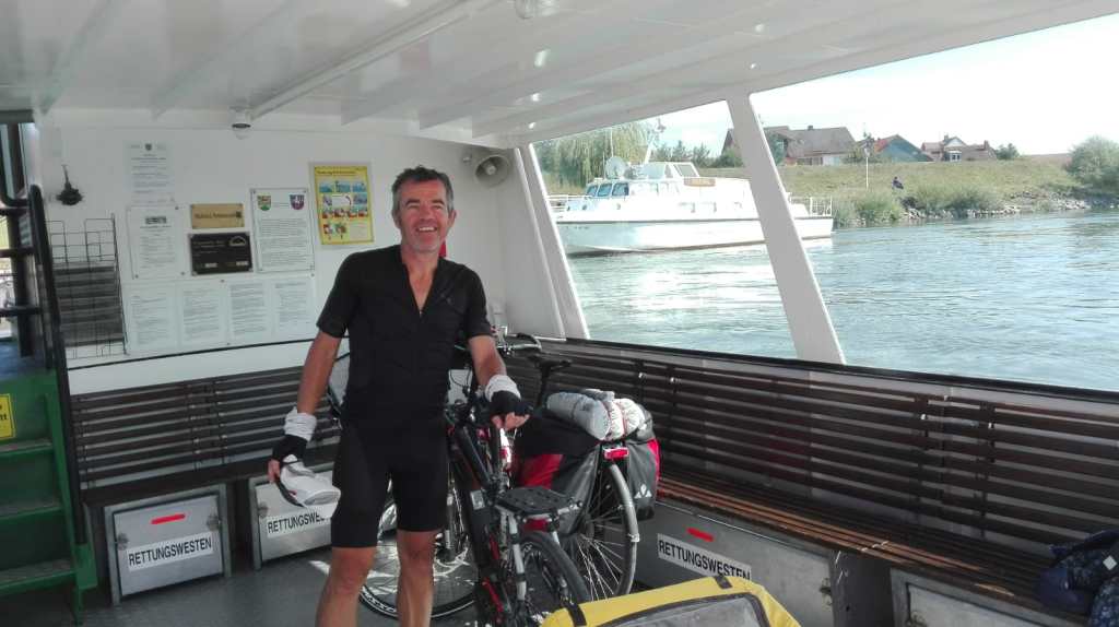 Nous repartons à serpenter entre les boucles du Donau, les routes de campagne, la voie ferrée, l’autoroute et les villages. Nous empruntons également un bateau pour traverser le fleuve. Un peu de répit dans cette longue journée.
