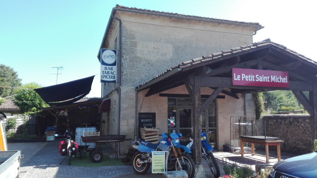 En milieu de matinée, nous avons encore le bol de trouver un bar-tabac-épicerie ouvert, prendre un café en terrasse, faire quelques emplettes et discuter avec le couple de propriétaires ainsi qu’avec les quelques clients qui s’enquièrent de notre périple.