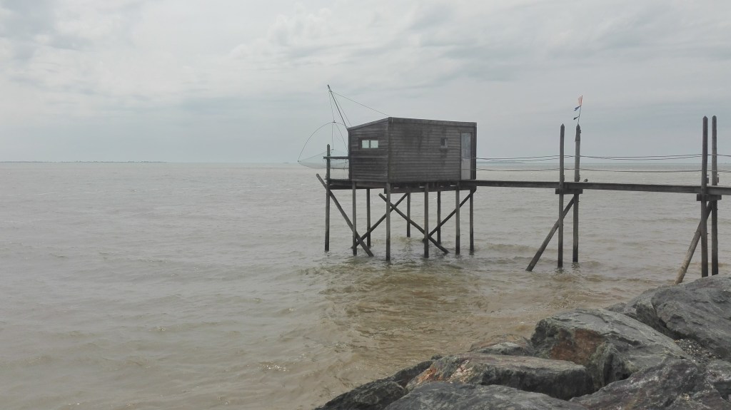 Pause casse-croûte à l’ombre des bâtiments de la Corderie Nationale et je reprends mon chemin vers La Rochelle. Je finis par retrouver la VélOdyssée à travers les marais d’Yves. Malgré une partie vraiment désagréable le long de la 4 voies, la piste cyclable s’étire en bord de mer. Par contre le méchant vent de nord-ouest ralentit ma progression.