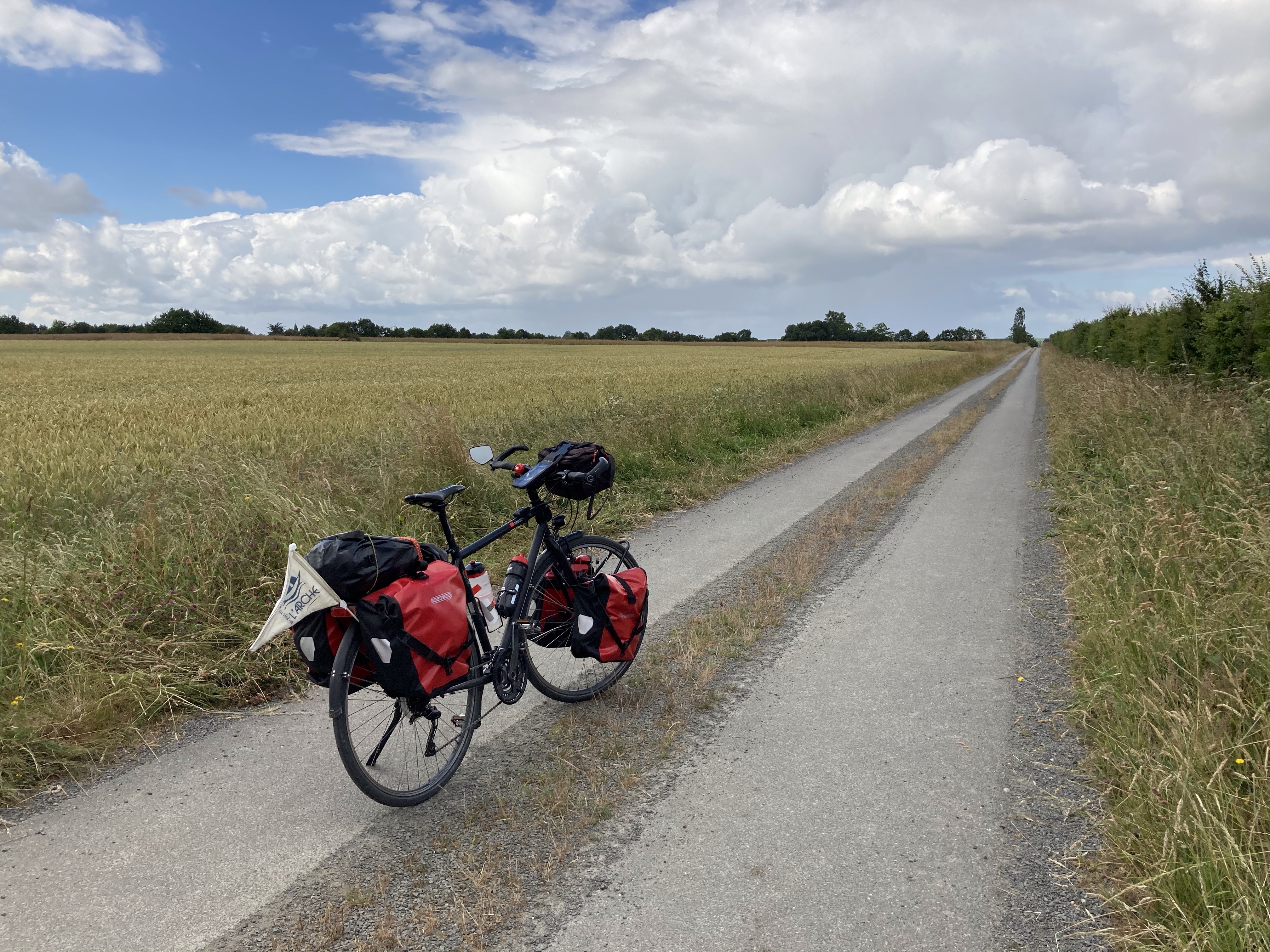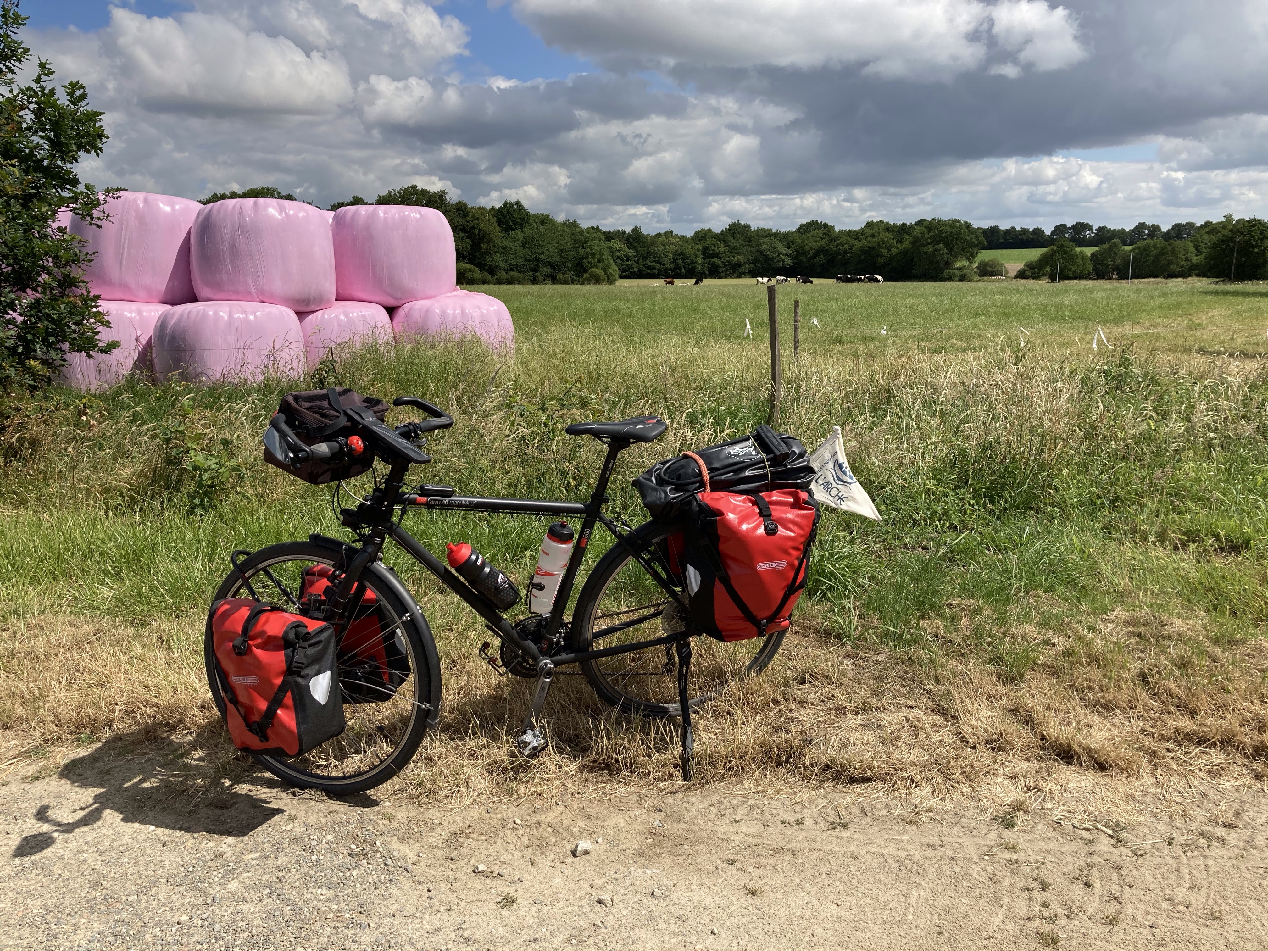 Il est 8h du mat’ et pas un bruit à La Grole. C’est le pied (ok facile). Après avoir récupéré mes vêtements lavés et séchés, mes appareils iBidule chargés à bloc, mon p’tit déjà copieux avalé, mes sacoches rechargées, mon vieux portable Androïd donné à Gène et mes adieux faits à tous les deux, je reprends les petites routes de campagne guidées par Géovélo. Circuit beaucoup plus sympa qu’à l’aller où je chemine de ferme en ferme sans aucune voiture.