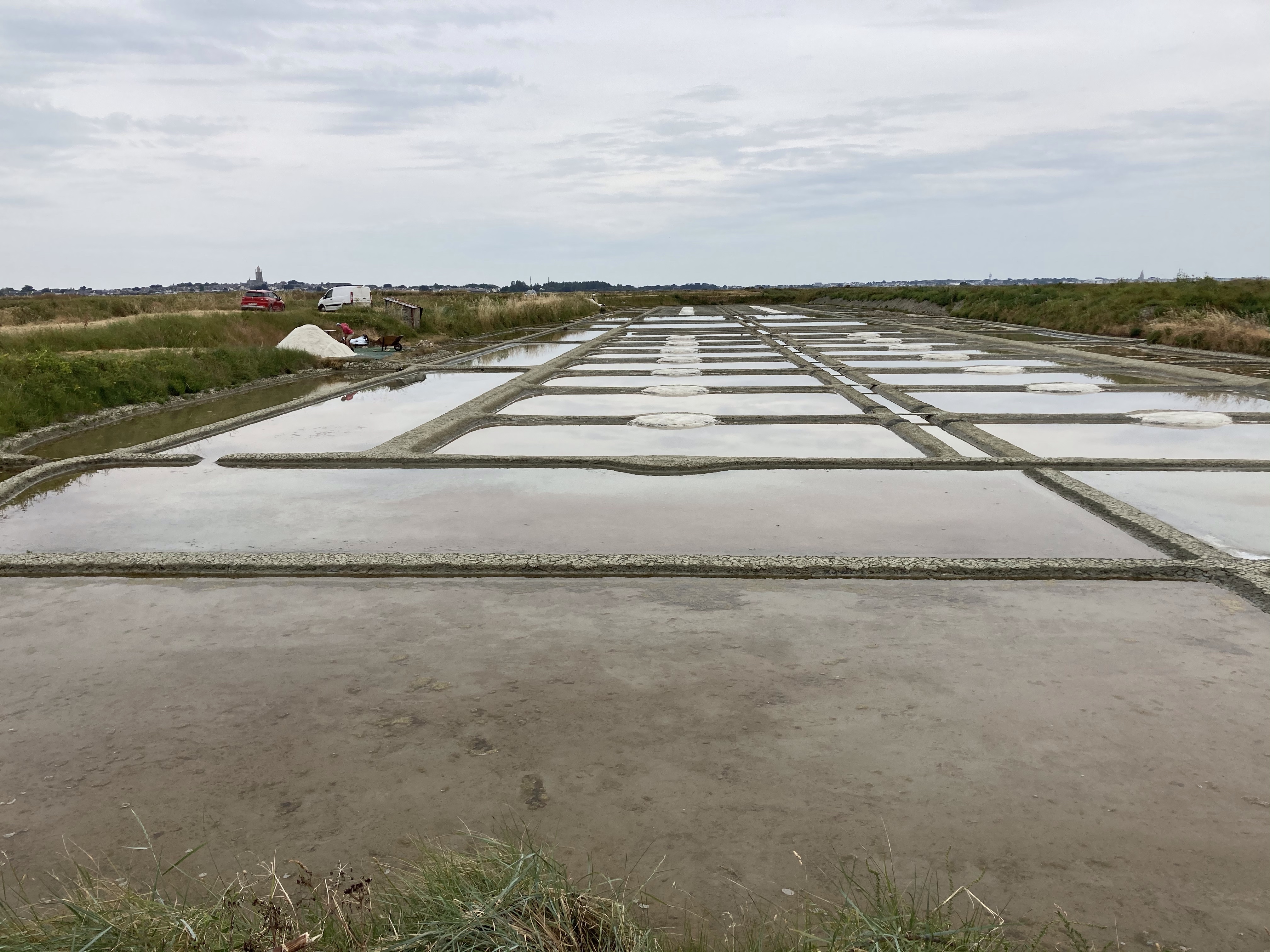 puis arrive à Le Croisic. Je pensais poursuivre directement ma route vers La Turballe mais c’est une presqu’île et je fais donc un tour de manège gratuit avant de trouver la route des marais et de traverser les marais salants de Guérande où travaillent de nombreux paludiers. Dur métier !