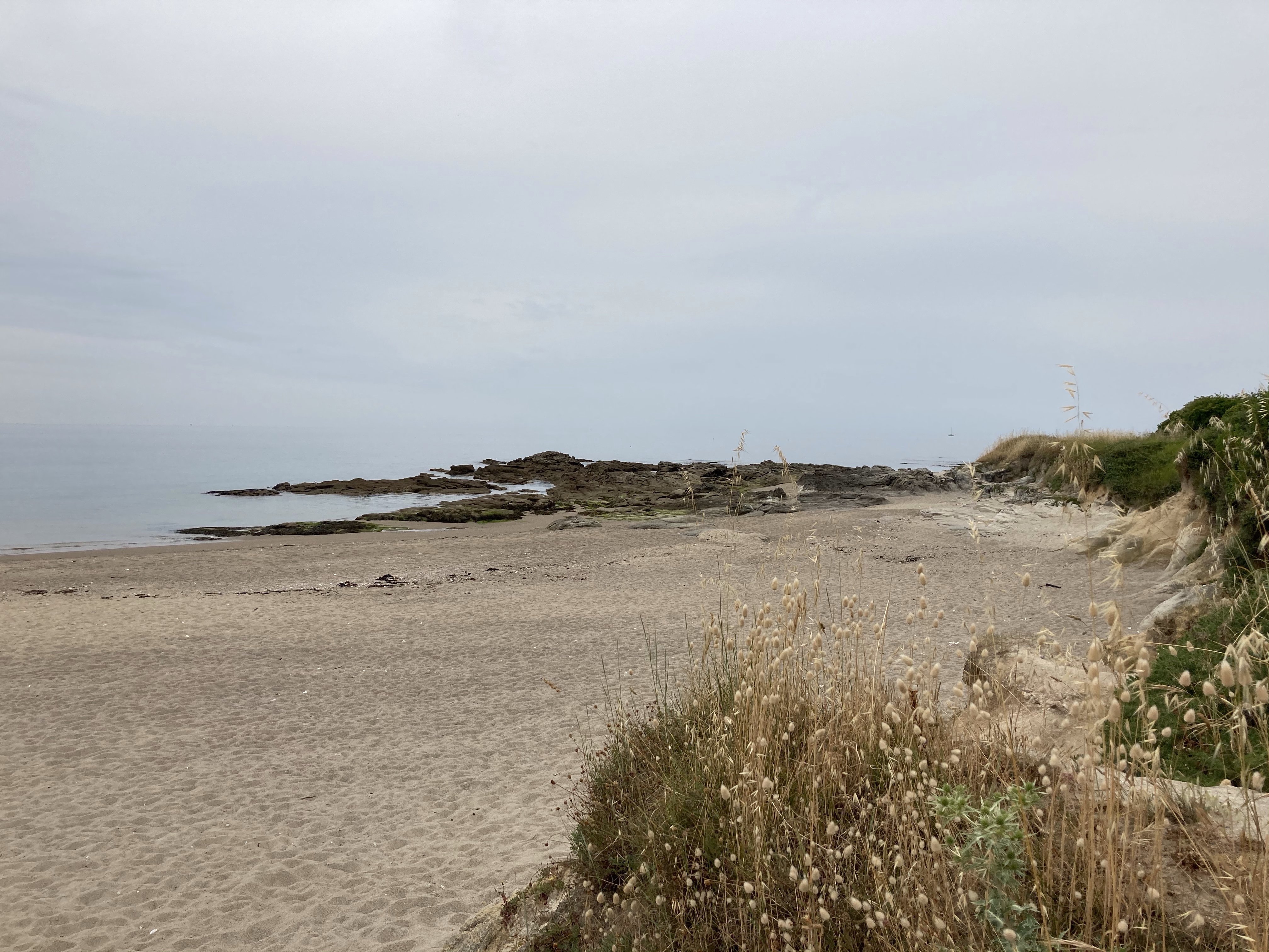 Le ciel est couvert, pas de vent mais température en baisse. Je longe la côte sauvage après avoir longé la côte de Jade en dessous de St-Brévin.