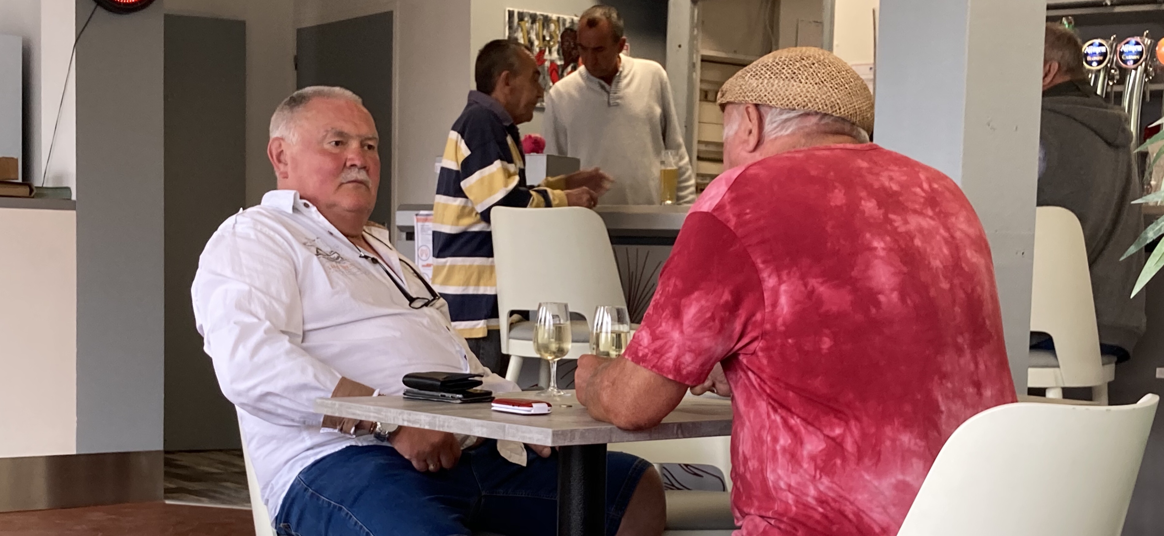 Puis pause-café à Quimiac avec une belle brochette de personnages aux dialogues truculents à la Audiard. Je me régale. J’adore ces ambiances de café de « province ». Ma présence n’a pas l’air de déranger grand monde. Ils doivent avoir l’habitude de voir passer des cyclos. J’en profite pour demander la météo à une jeune femme qui tape la causette avec un autre vieux. Elle m’annonce de la pluie pour cet aprèm’ est demain. Effectivement, en sortant du bistrot, il se met à tomber ce fameux crachin breton. Je décide donc de rejoindre l’itinéraire de la VélOcéan et de suivre les pancartes sans me poser trop de question.