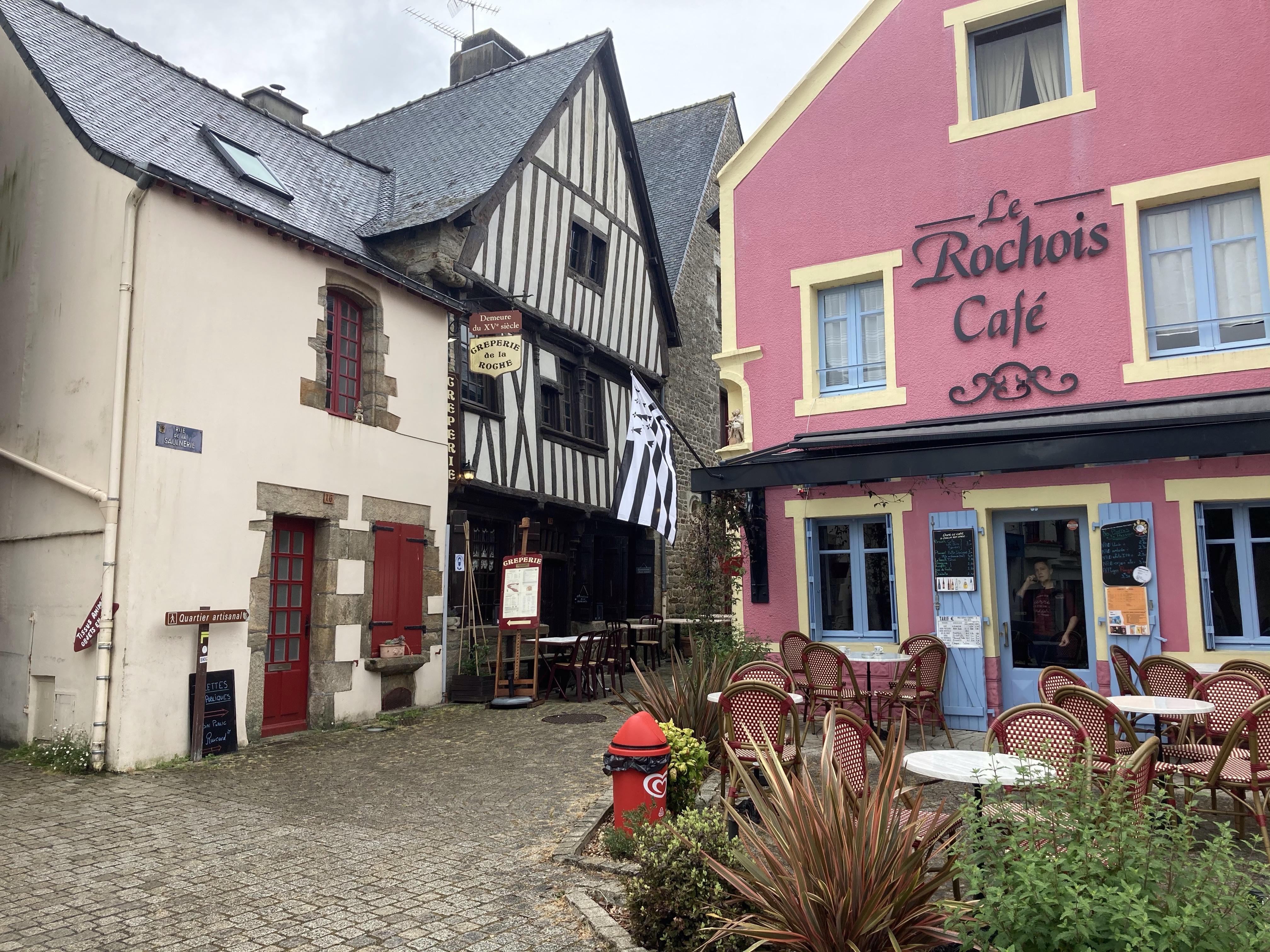Je me balade dans les vieilles rues où beaucoup d’artisans se sont installés. Sur la place du village, se trouve une maison à colombage du XVé siècle. Dommage que la météo ne soit pas au top. Mais il faut bien qu’il pleuve aussi; c’est tellement sec partout …