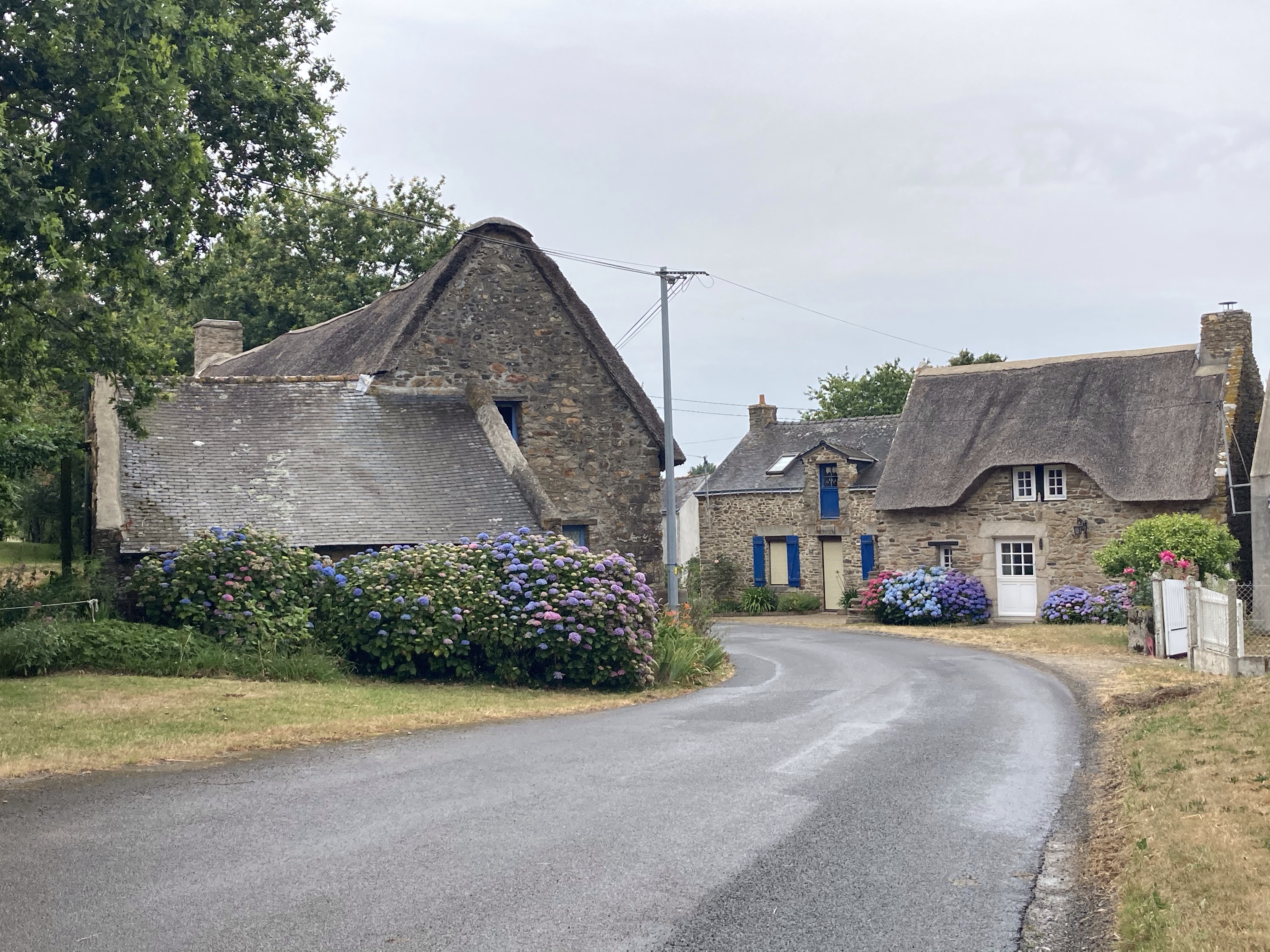 Je continue ma route en me fixant l’objectif d’arriver au camping de Kernéjeune repéré sur Maps.me. J’ai trop envie d’une bonne douche chaude après cet après-midi froid et humide. Sur la route, j’aperçois mes premières maisons bretonnes avec des toits de chaume.