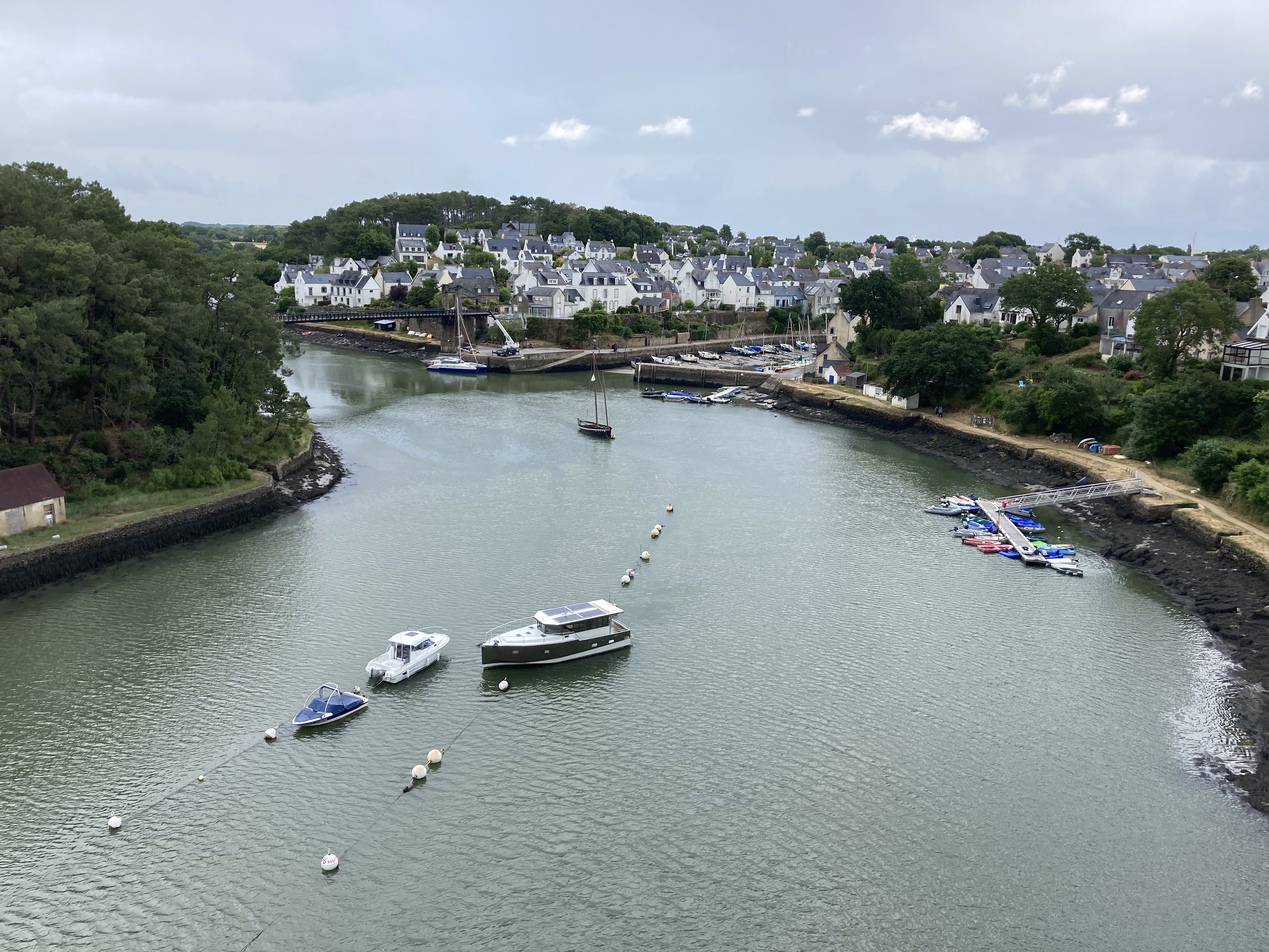 Par contre, les gros nuages noirs s’amoncellent sur la ville et je ne prends pas le temps de visiter la vieille ville de peur de me reprendre un grain sur la tête. J’ai déjà eu l’occasion de visiter ces ruelles historiques. Pas de regret. Je taille la route pour arriver à l’heure de l’apéro à Carnac. Je m’arrête tout de même à Baden déguster mon 1er far breton aux pruneaux. Puis j’enjambe la rivière du Bono avant d’arriver à Auray.