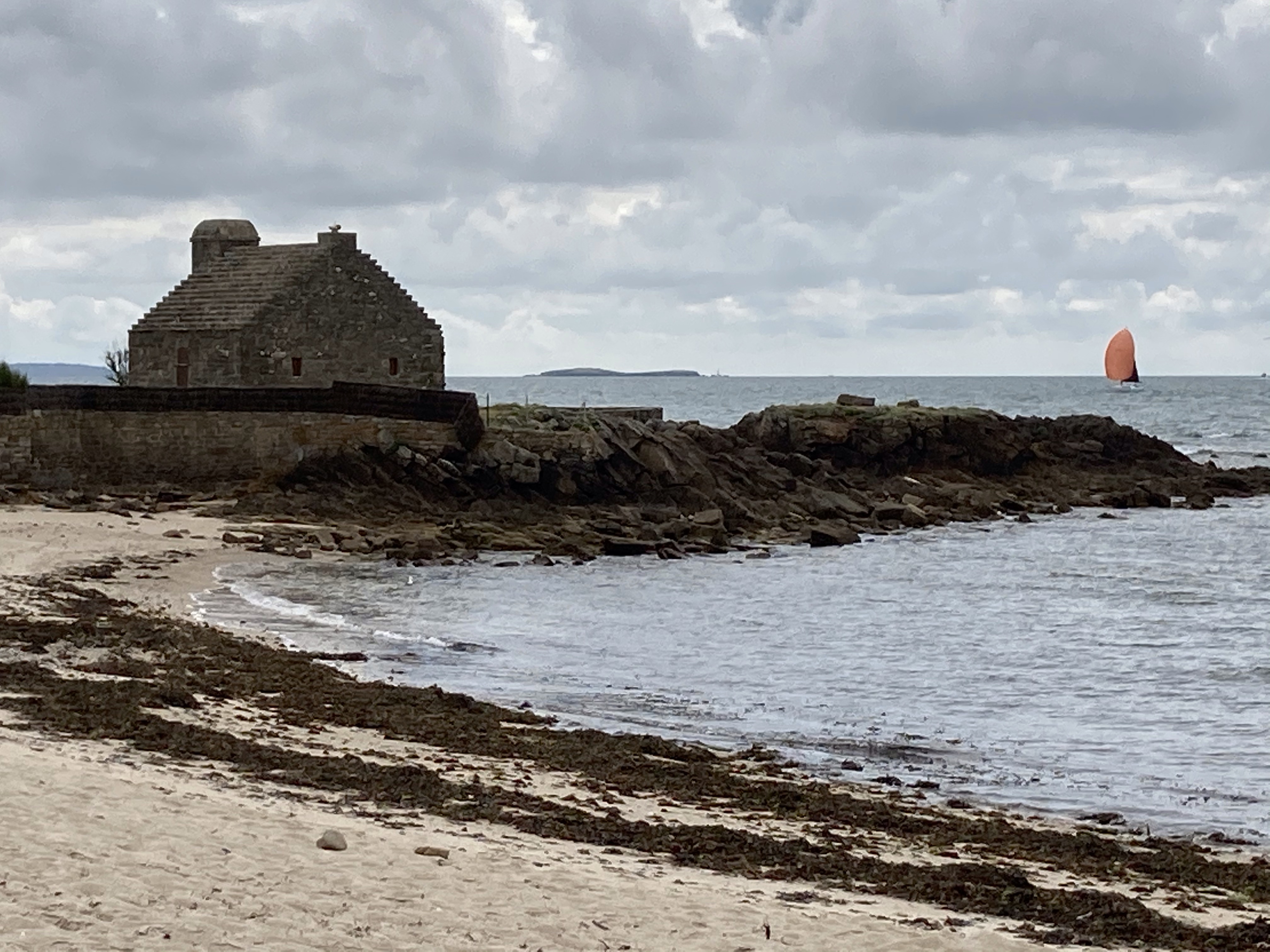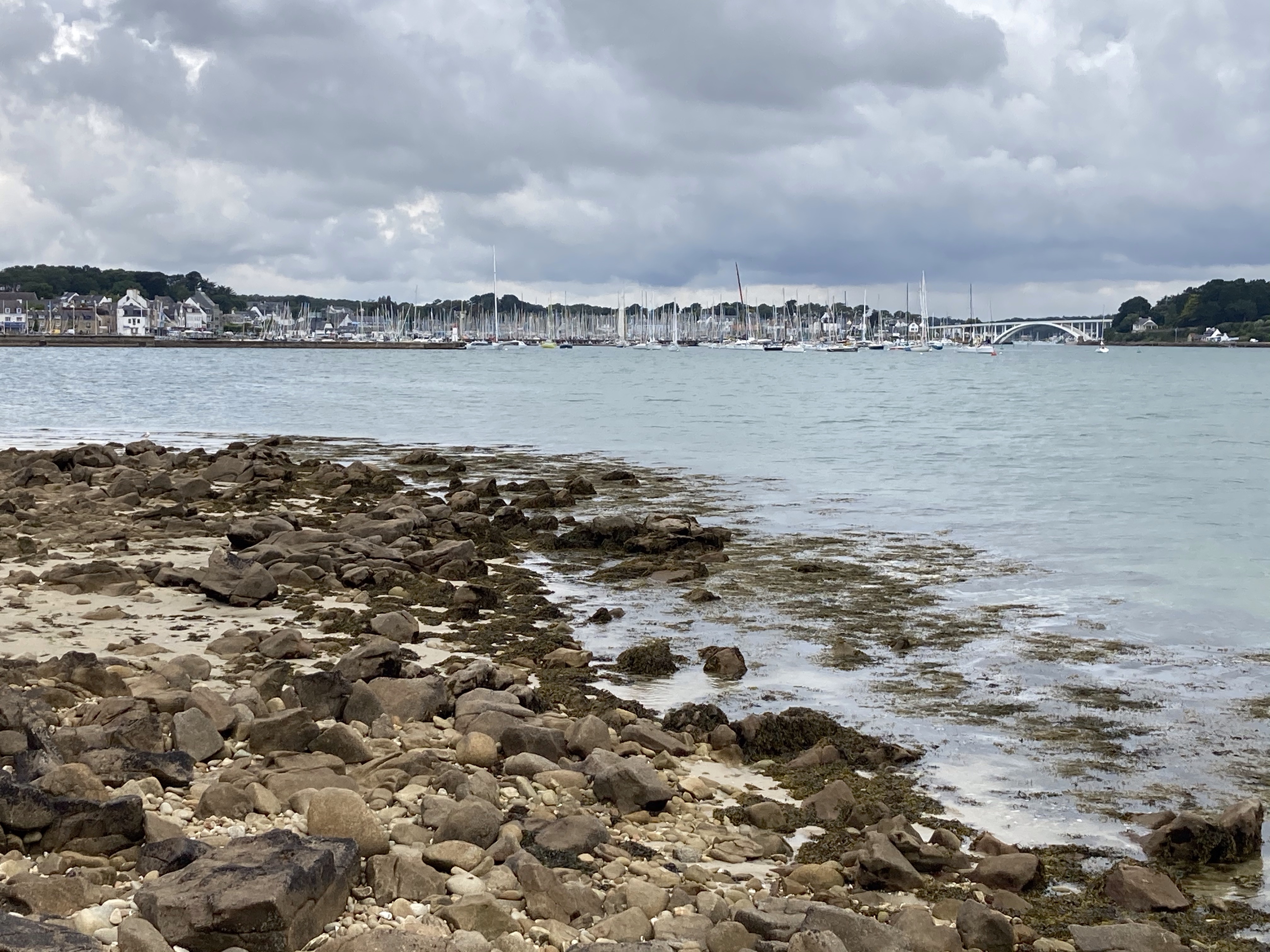 Journée off où je reste à Carnac avec Loïc et Cathy. Grasse mat’. P’tit déj’ copieux. Configuration de l’iPhone. Balade à pied au bord de mer du côté de la Trinité/Mer. Déjeuner avec vue sur mer de moules/frites à volonté. Café chez Jacques, kite-surfer de 69 ans, ami d’adolescence de Loïc. Sieste sur la plage. Puis nettoyage du vélo et des sacoches. Découpage de la bâche pour la mettre au dimension de la tente. Et apéro dînatoire avec ses sympathiques cousins Pierre-Marie et Denis et sa truculente cousine Laurence. Déjà minuit ! Que cette journée a passé vite mais quel réel plaisir d’être en si bonne compagnie. Merci Loïc pour cette mémorable journée dans tes terres natales.