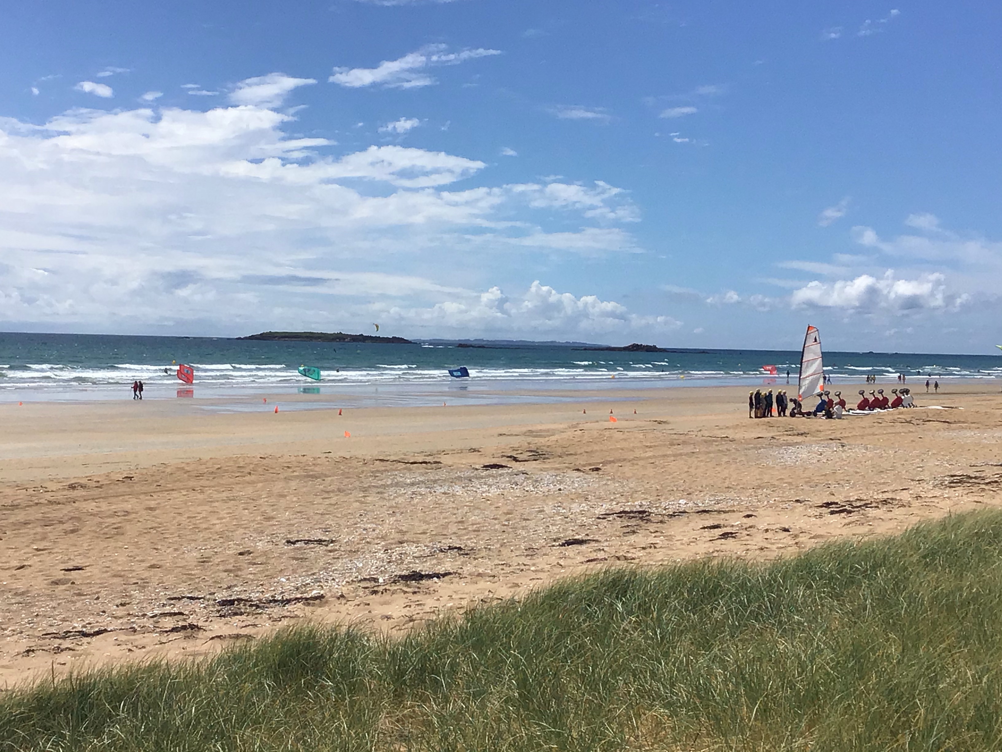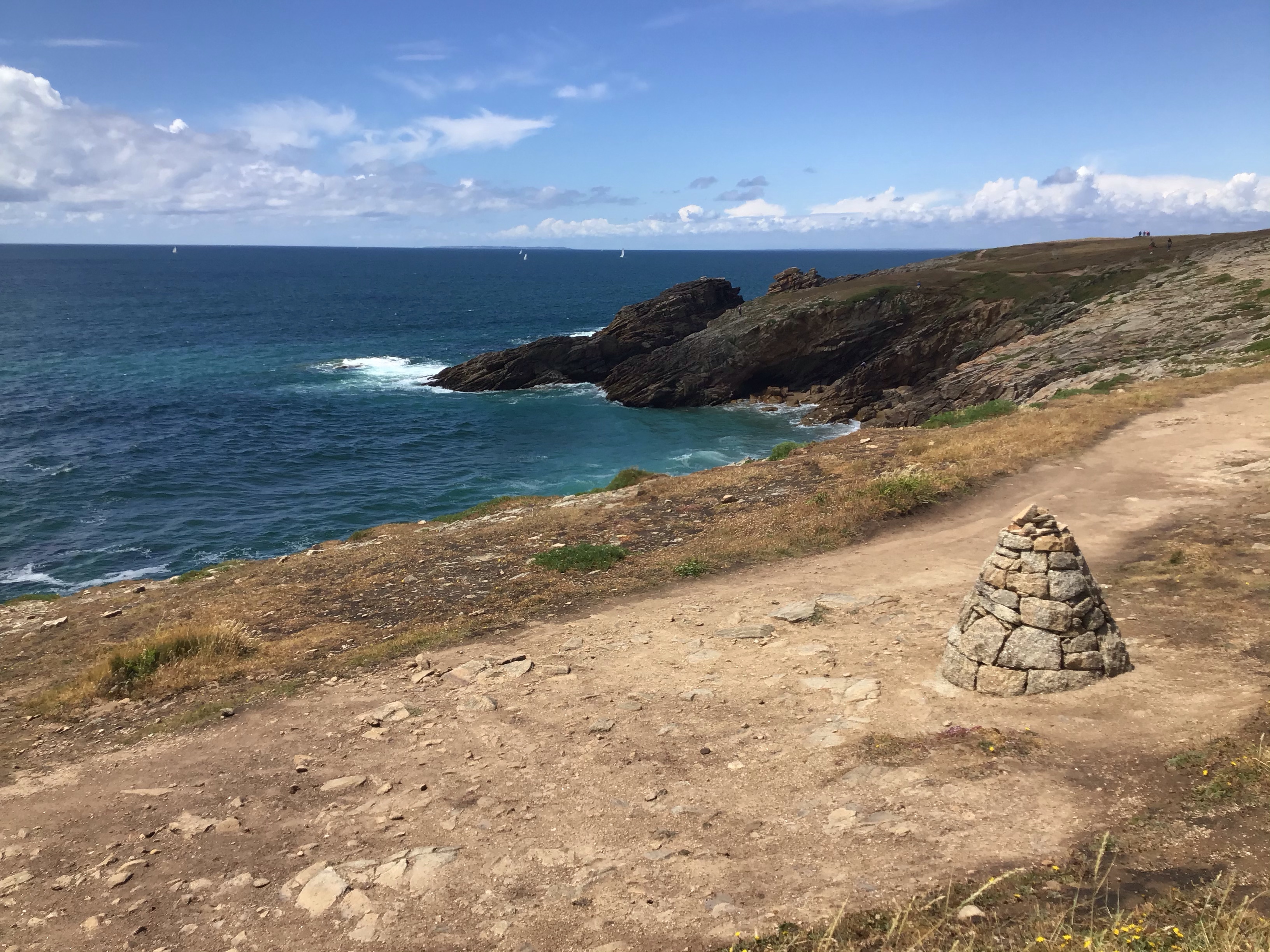 Je sors à regret de la presqu’île et longe par une belle piste la « Grande Plage » où les amoureux du vent et de la mer s’en donnent à cœur joie ainsi que les naturistes bien statiques et extatiques devant de tels paysages.