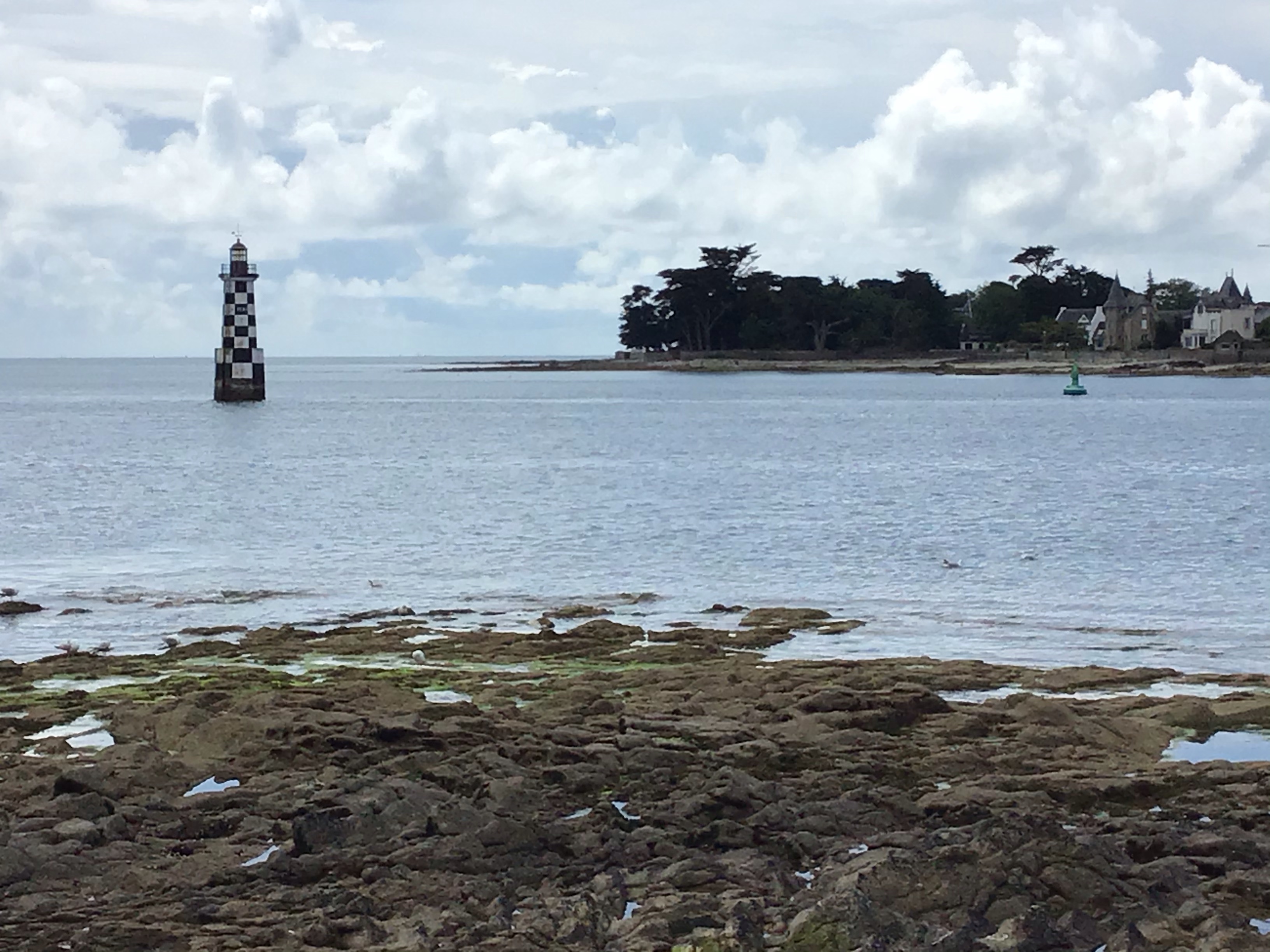 Le bac n’arrive que vers 14h15 et il faut descendre quelques marches pour charger le vélo à l’avant. Périlleux l’affaire surtout que si je me loupe c’est bouillon assuré. Nous ne sommes que 3 à embarquer. Je comprends pourquoi les autres bacs ne reprennent pas. Une fois à Loctudy je reprends ma route plein ouest en espérant que la météo reste clémente vu le ciel menaçant à l’intérieur des terres.