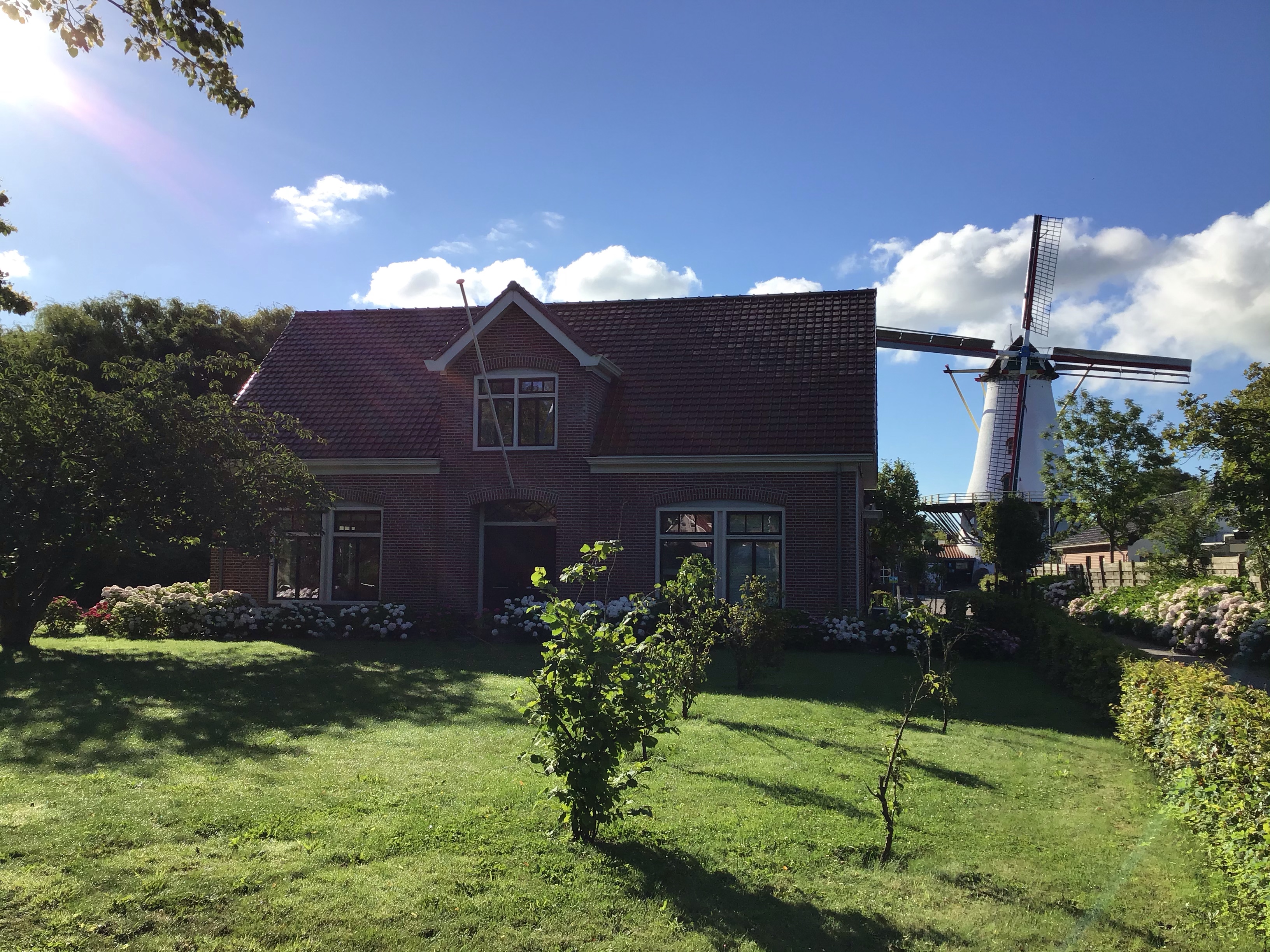 Par contre, j’essaie de rentrer dans les terres à Renesse pour trouver un café mais tout est encore fermé. J’y trouve quand même un joli moulin et ces maisons typiques en briques marron.