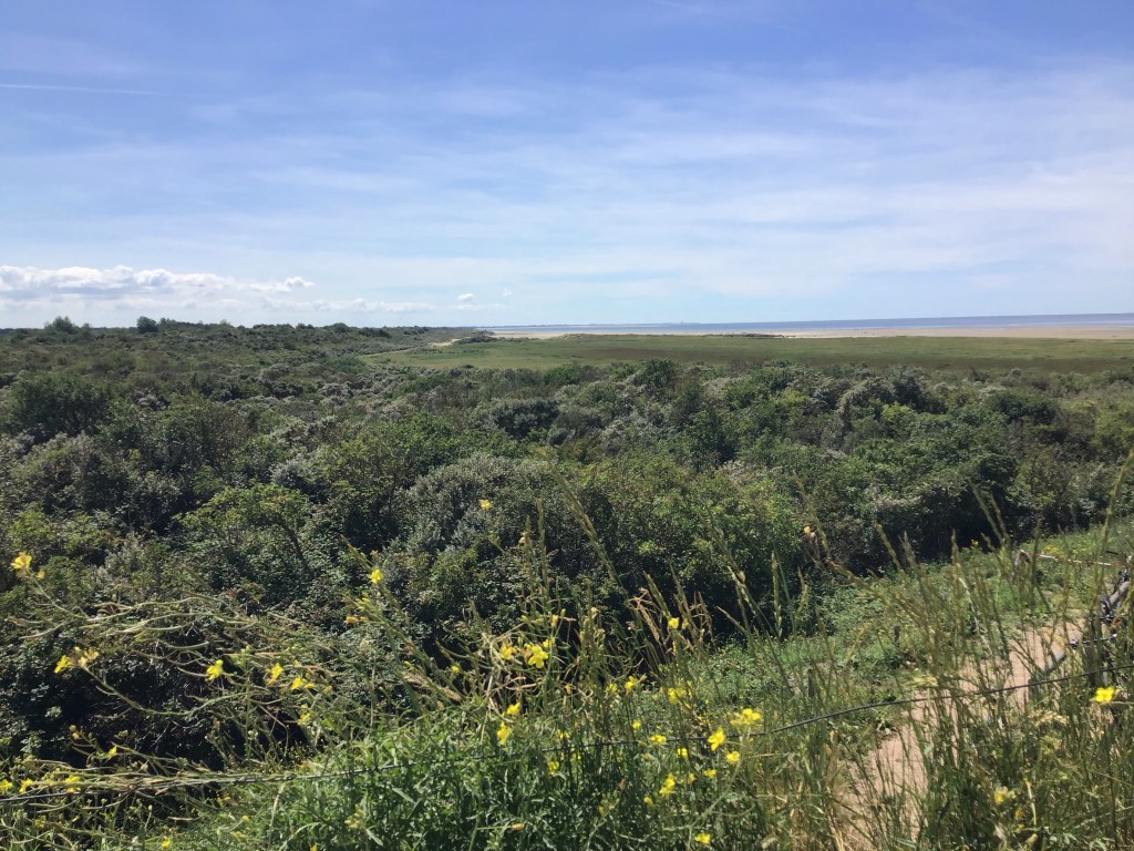 Je continue à remonter vers le nord-ouest toujours en suivant l’EV12 et traverse cette fois-ci la presqu’île de Schouwen-Duiveland. L’itinéraire emprunte une piste cyclable au pied des dunes en longeant la mer. Le spectacle des yeux est au rendez-vous en ce beau dimanche matin.