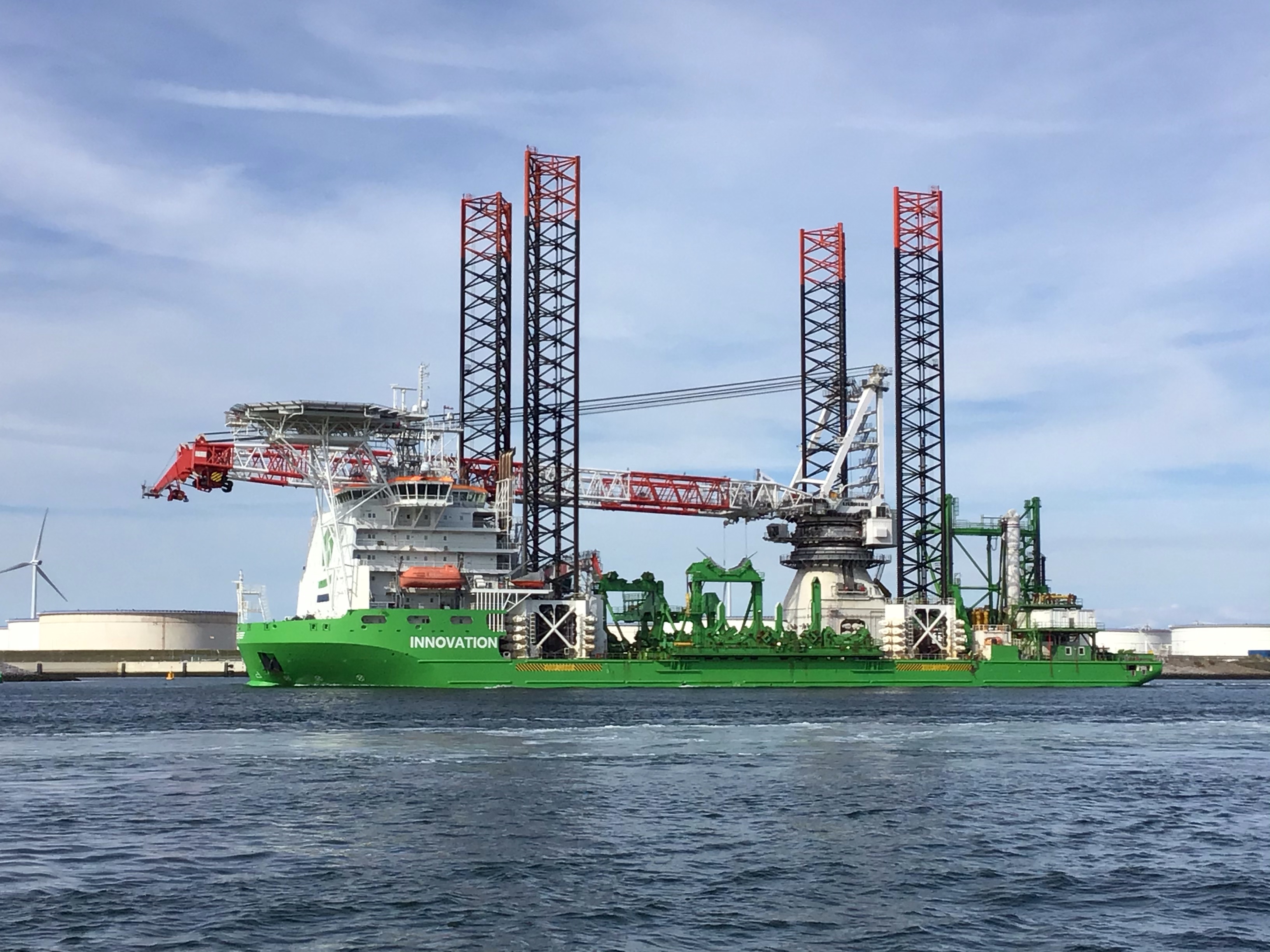 Un autre navire étonnant me passe devant le nez; j’imagine qu’il doit installer des éoliennes ou des plateformes pétrolières en mer.