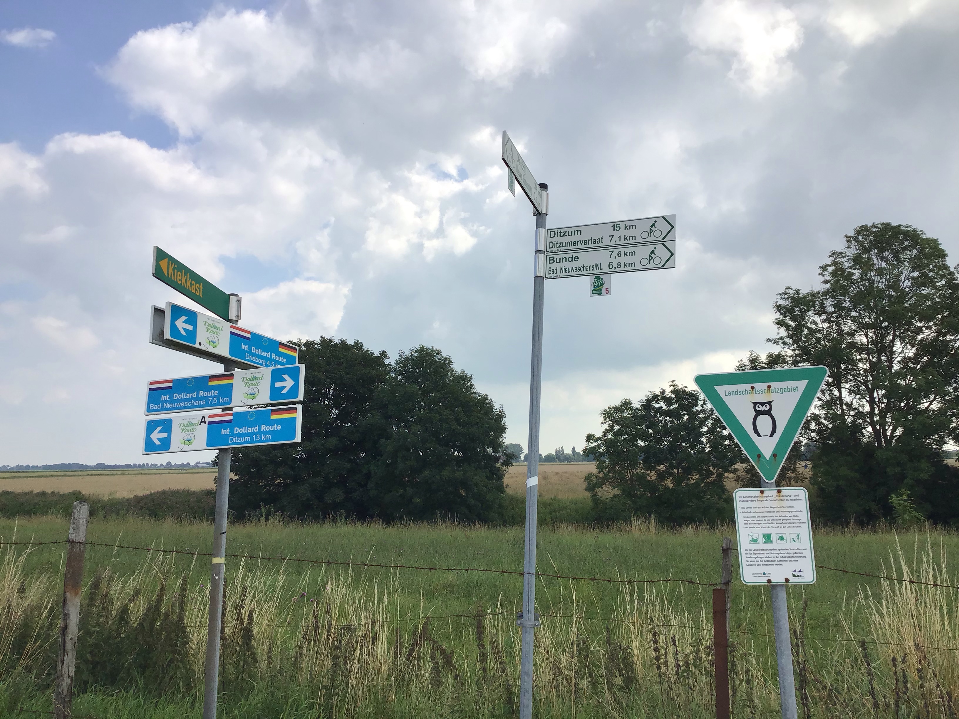 Arrivé côté allemand, la signalisation change mais toujours sur réseau cyclable. Je me dirige vers Ditzum en espérant cette fois-ci que le ferry sera opérationnel.