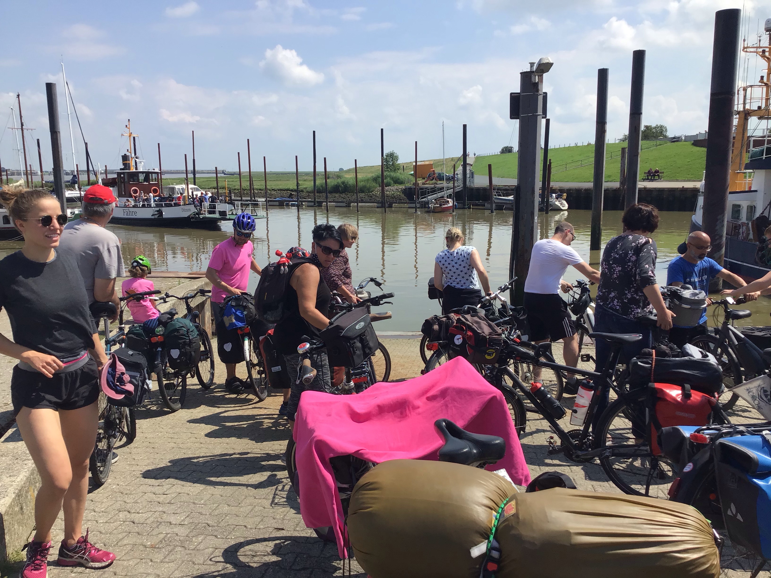 Je file donc jusqu’à Delfzjil où j’espère trouver un ferry pour traverser l’Ems qui marque la frontière entre les PB et l’Allemagne. Le réveil est d’ailleurs difficile pour certain en cette belle journée ensoleillée.