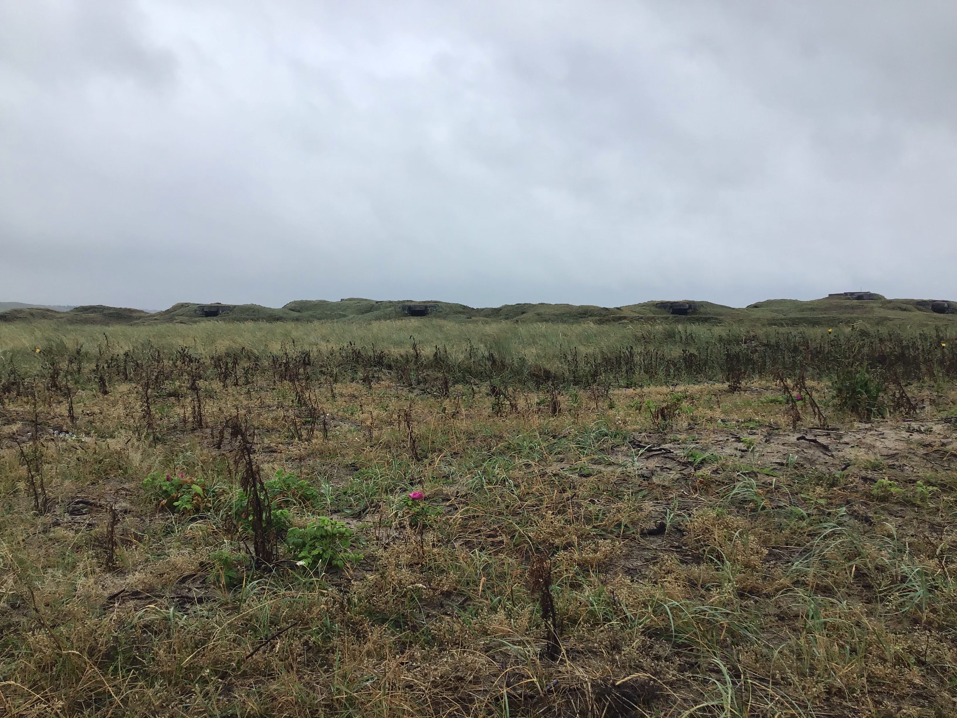 En ce dimanche matin pour le moins maussade, il n’y a pas grand monde sur la route. Nous progressons à bon rythme dans ces paysages sauvages de forêts de pins et de tourbières et arrivons à Hanstholm à la pointe N-O du Danemark. Nous espérons trouver un café pour nous poser et sécher un peu.