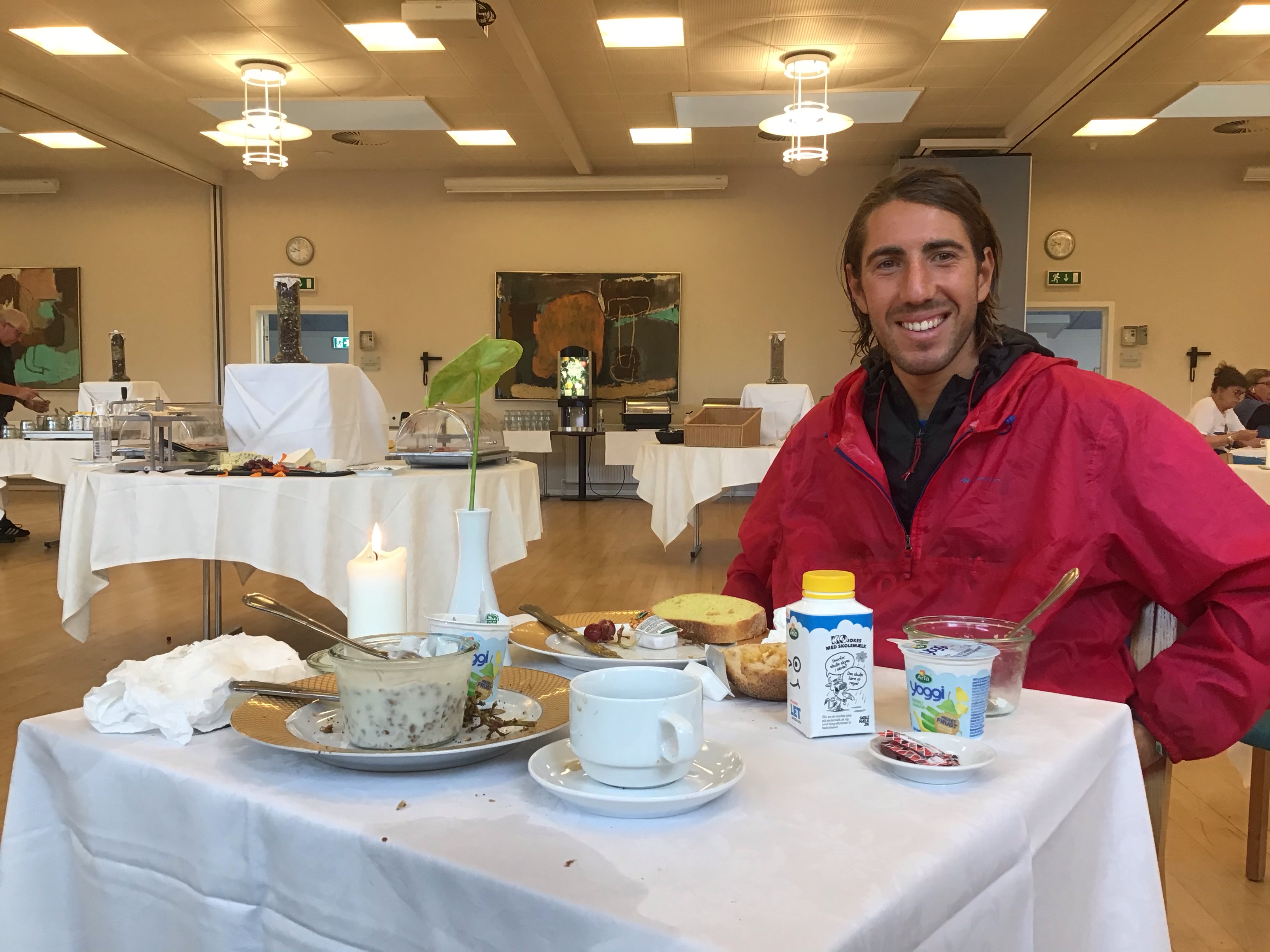 En milieu d’après-midi, la pluie s’arrête enfin. Cela faisait 24 heures non-stop de flotte. Nous arrivons à Svinklov et décidons de nous arrêter pour essayer de faire sécher le matos et d’aller se prendre un chocolat bien chaud dans un magnifique hôtel-restaurant, le Svinklov Badehotel, en haut des dunes donnant sur la mer. Nous prenons également 2 très bons gâteaux pour accompagner notre chocolat chaud servi avec de la chantilly. L’addition est aussi corsée. Décidément, c’est journée grand luxe aujourd’hui !