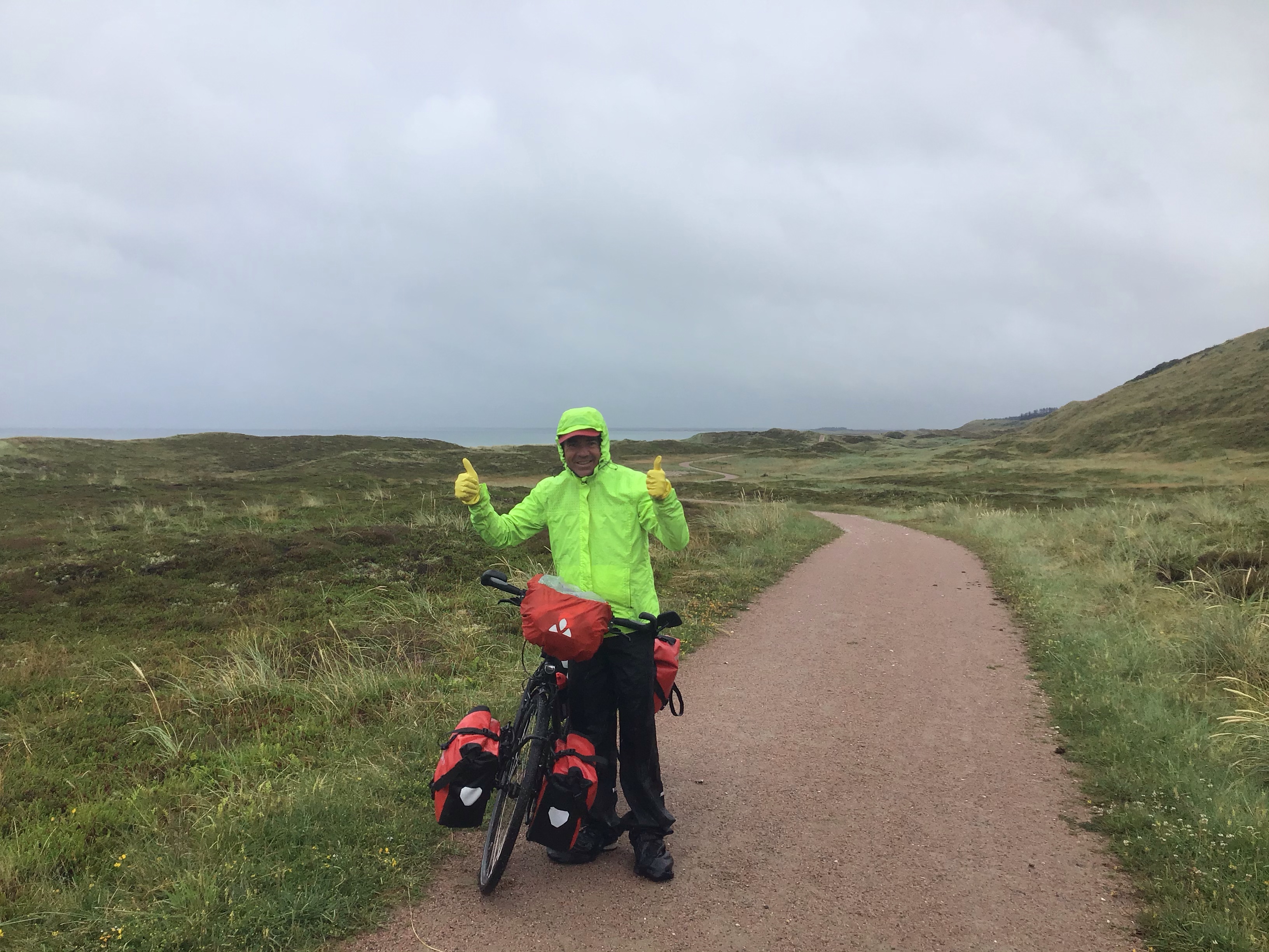 Nous faisons une halte dans le port de Nørre Vorupor puis reprenons la piste qui longe la route 181 toujours sous une « easy rain » comme nous a dit le gérant du camping hier soir. Iker jure des « Que tiempo de mierda » mais avec le sourire. De toute façon, il faut faire avec.