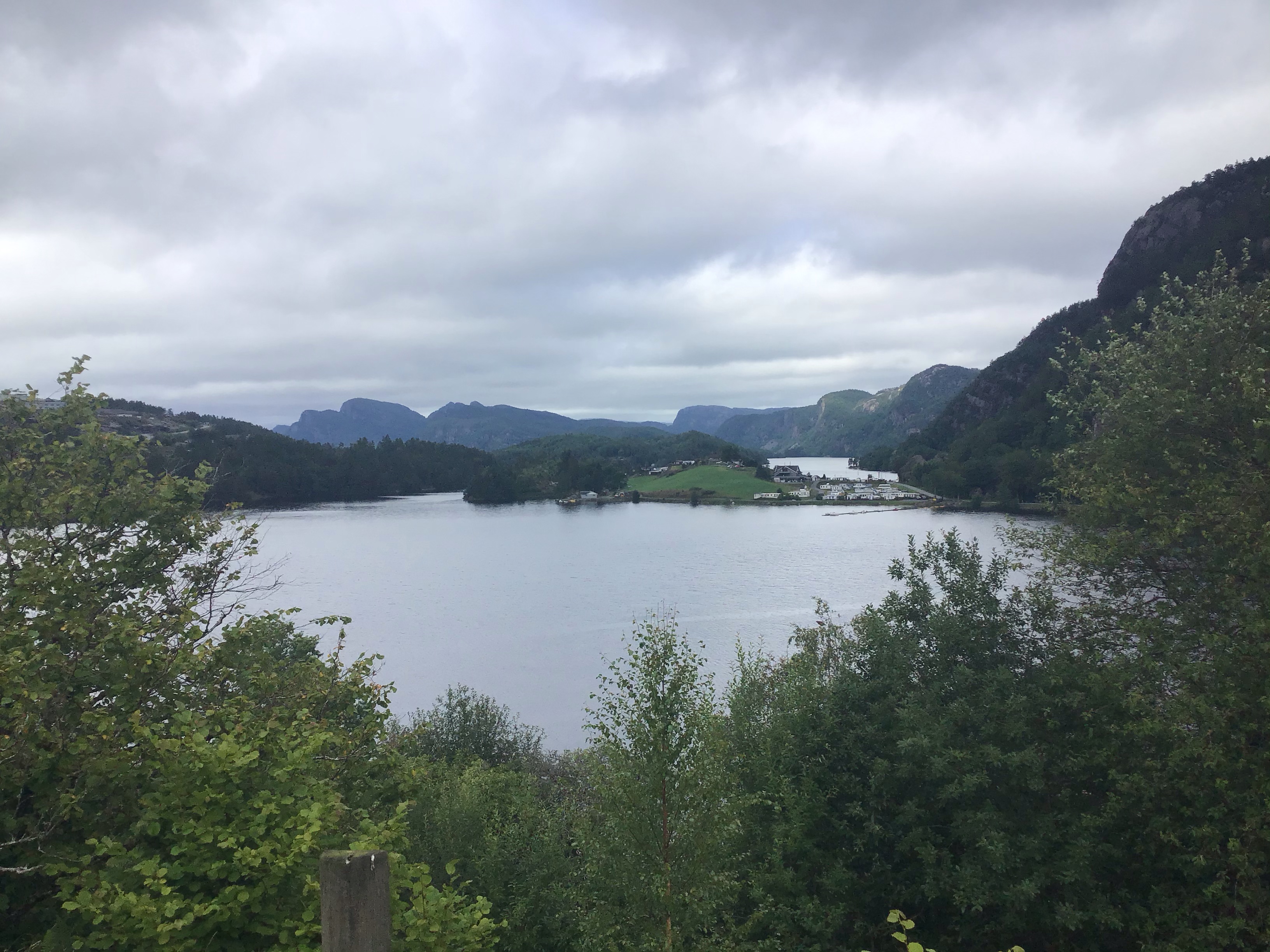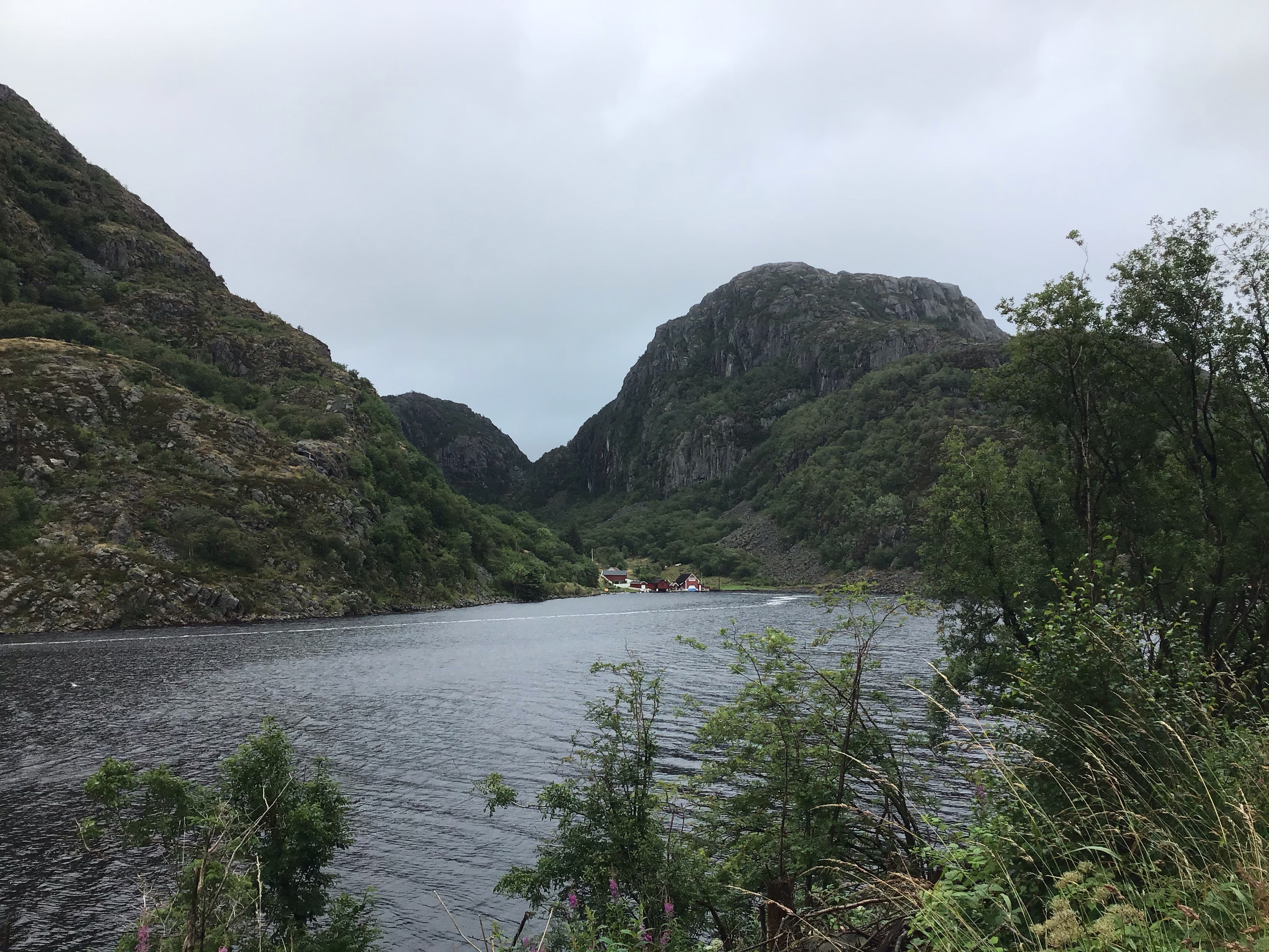 Puis je prends à droite plein nord pour rejoindre Knivesdal tout au fond d’un fjord. Évidemment il faut traverser à nouveau des montagnes, longer des fjords ou des lacs. Mais, malgré la météo, que ces paysages sont grandioses !