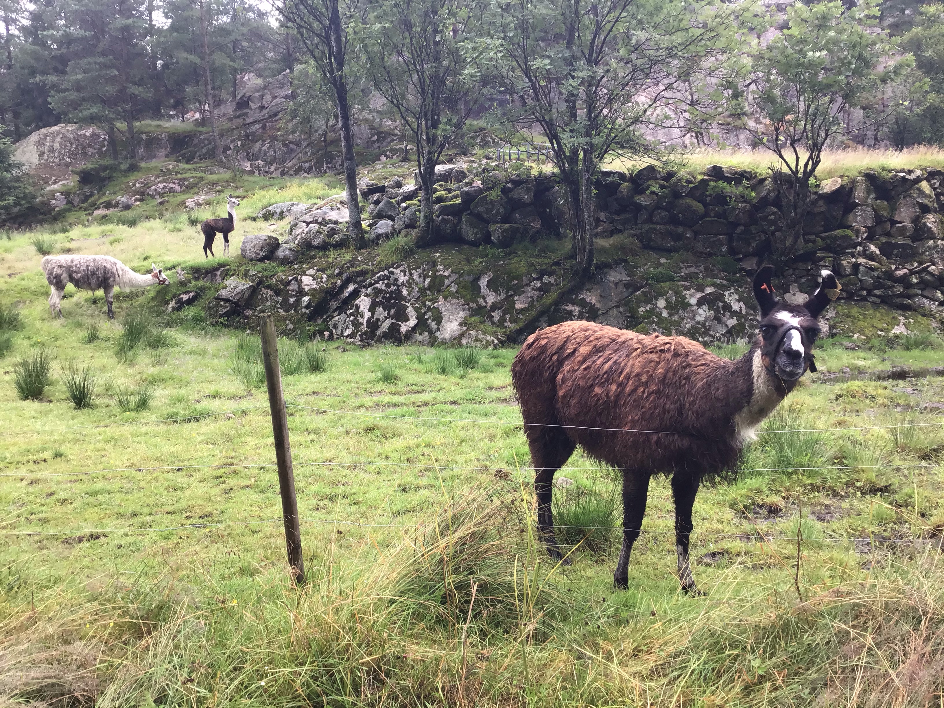 … excepté un couple de lamas et son petit perdus dans ces montagnes norvégiennes si loin de leur Amérique de Sud natale.