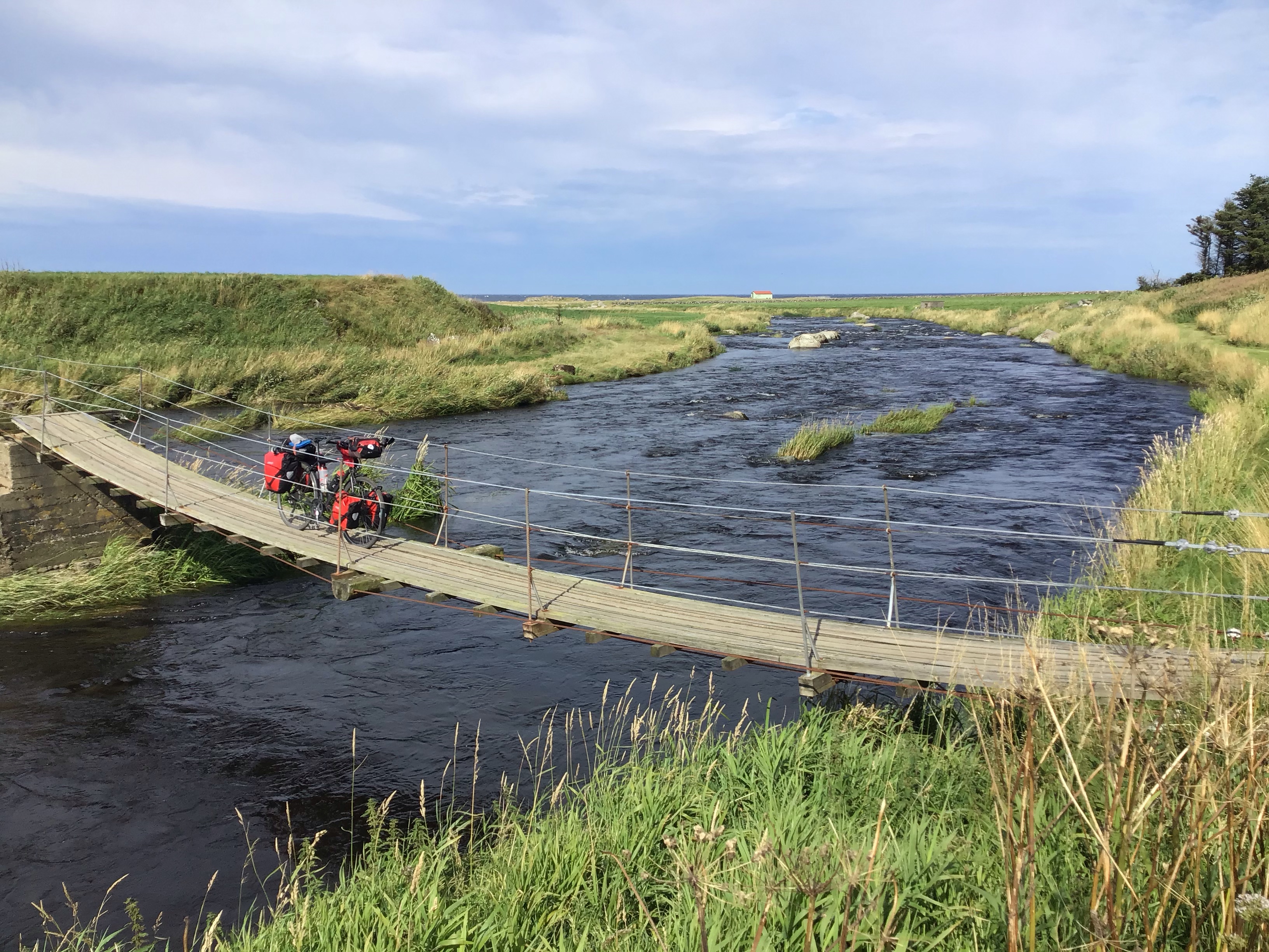 Il me faut également faire preuve de prudence lorsqu’itinéraire emprunte de tels passages. C’est sympa mais, avec l’espacement entre les planches, légèrement casse-gueule et, vu le zef qui souffle en travers, mieux vaut ne pas se mettre à l’eau !