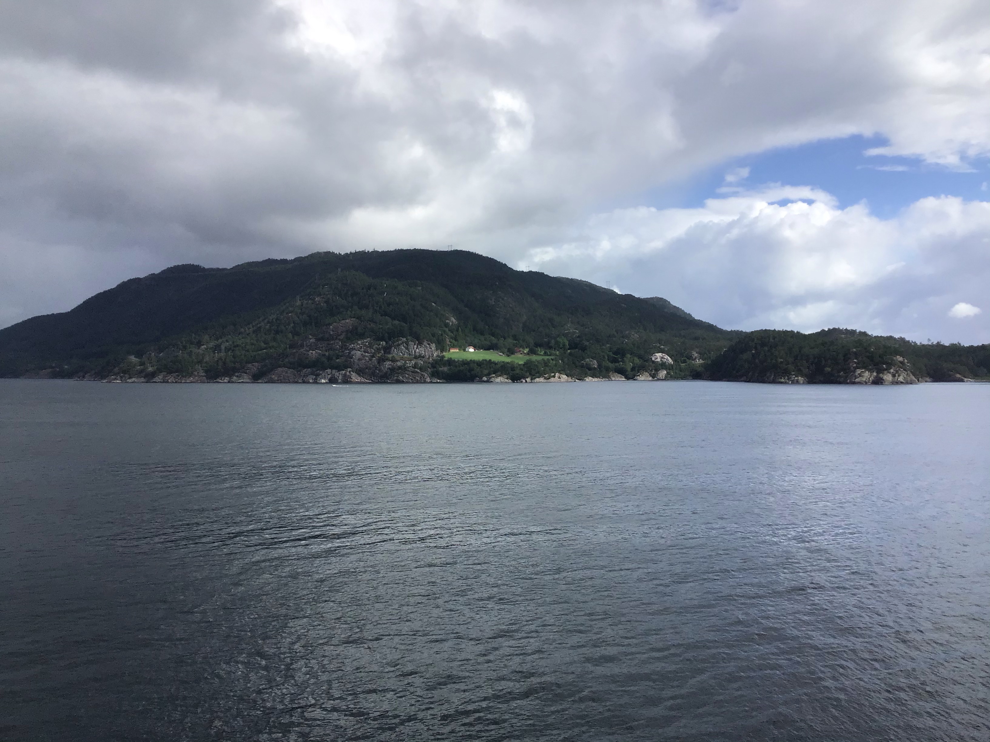 Je m’installe confortablement dans un salon à la proue du ferry et profite de la vue grandiose des fjords et îlots qui s’offrent à moi en cette matinée encore bien maussade (15°C) : la matinée en CinémaScope !