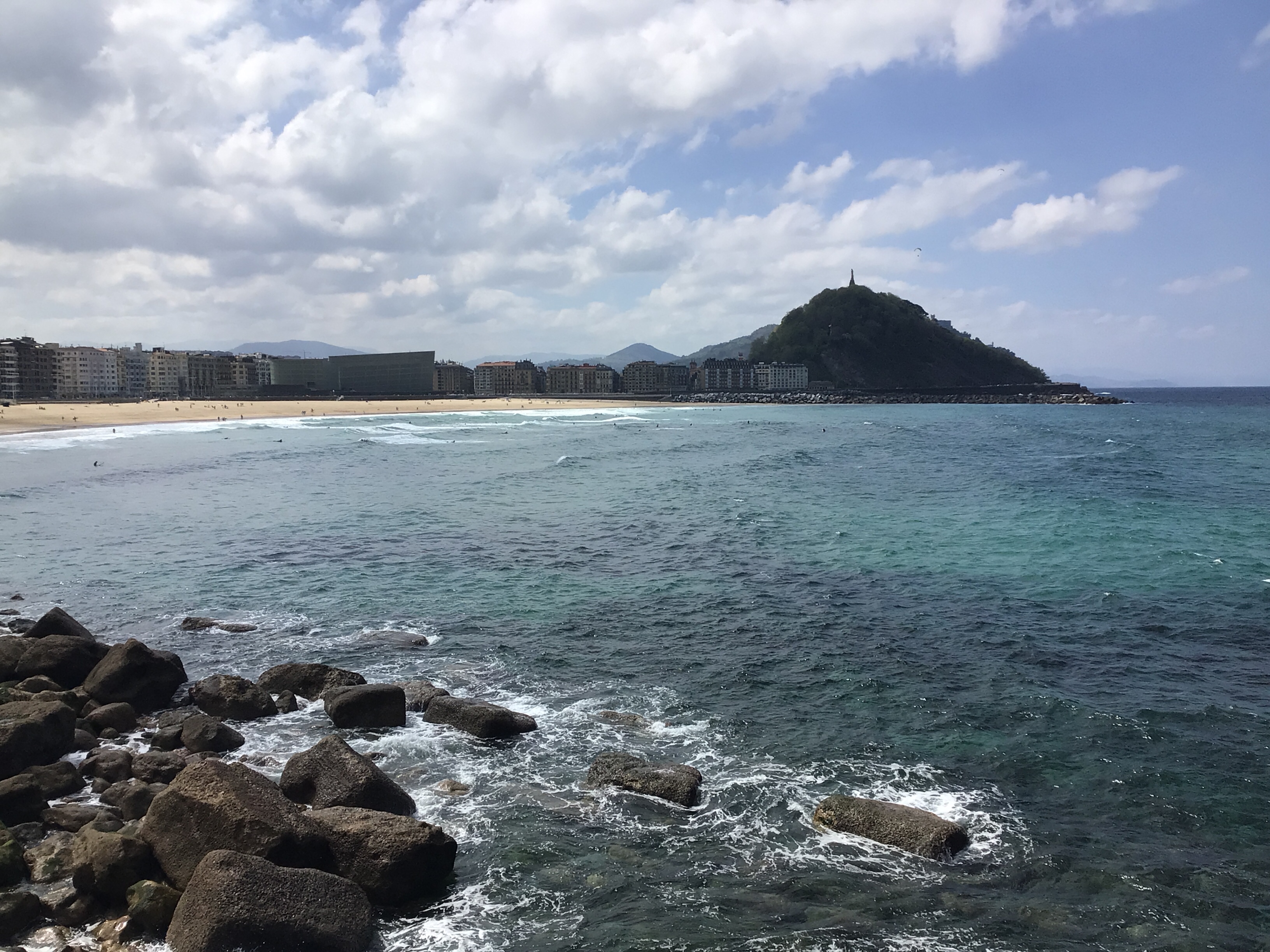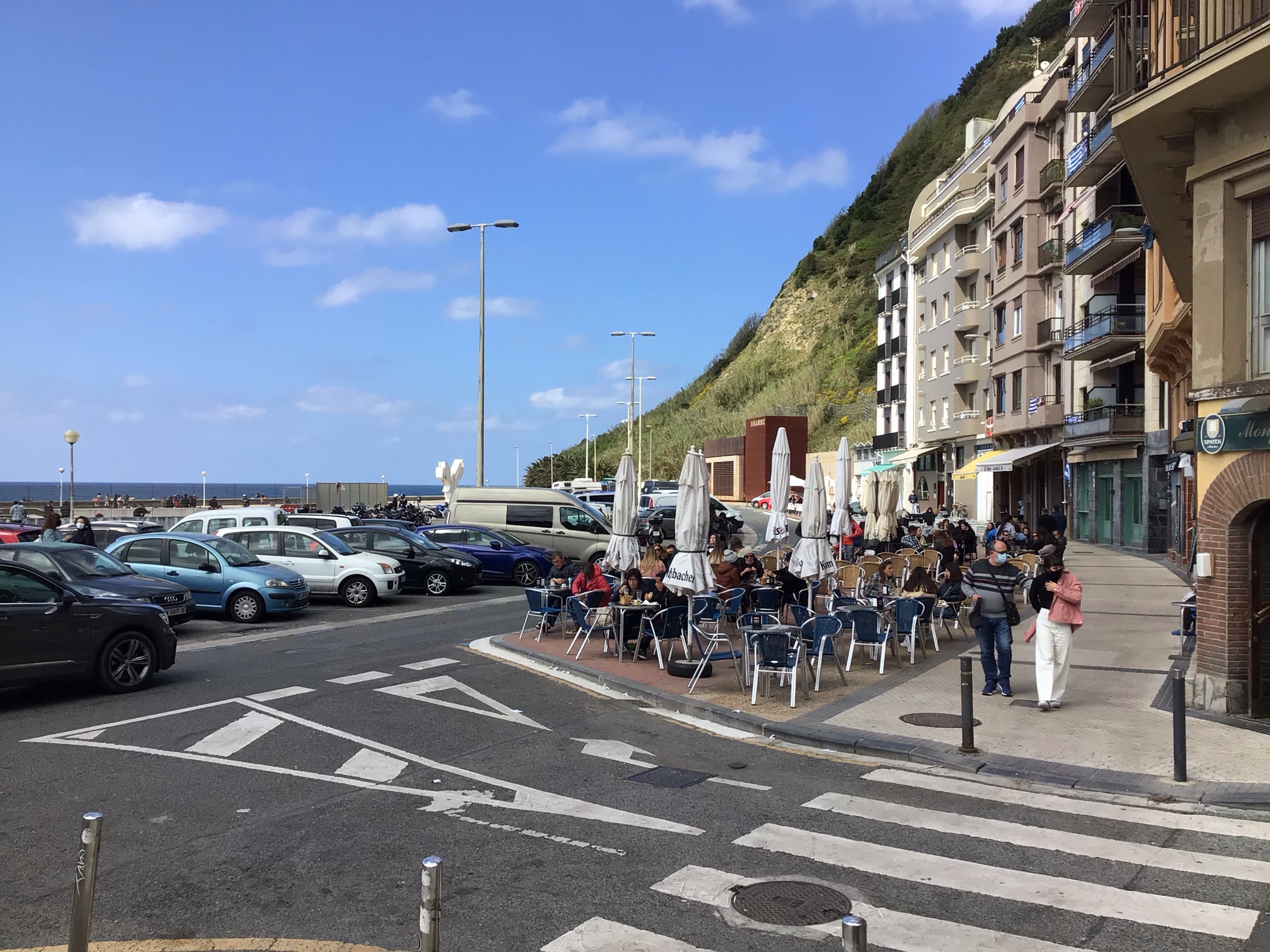 Je poursuis jusqu’à San-Séb où je m’arrêterai déjeuner. En arrivant vers le port, je longe l’endroit où les femmes de prisonnier politique tendent le portrait de leur mari en formant une haie d’honneur émouvante lors de la course pédestre Behobi-San-Séb. J’arrive en front de mer et me pose sur un banc face à la baie.