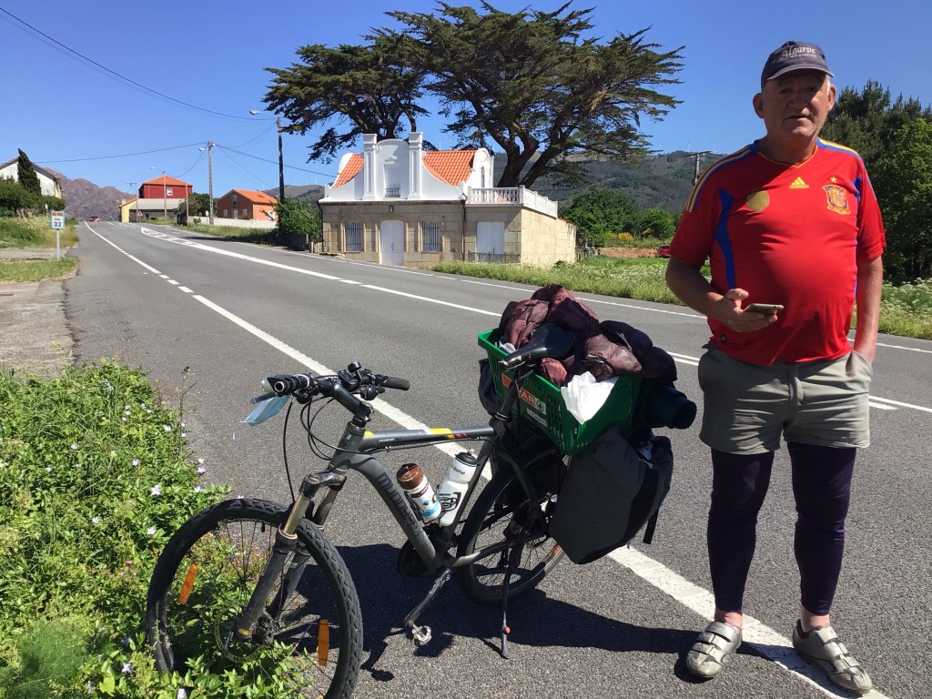 Malgré une nuit plus courte que d’habitude causée par la rédaction de ma diatribe et du cerveau en ébullition après cet exercice difficile, je me réveille frais et dispo pour un nouveau départ. Mes vêtements sont propres. Mon vélo également : patins de frein changés, lavage au jet, nettoyage des galets encrassés, révision. Je n’ai plus qu’à quitter cette auberge et son proprio bien sympathique puis reprendre la route de la Costa do Morte. Le vent souffle fort et froid. Cependant, j’ai archivé mes gants, jambières et veste d’hiver.