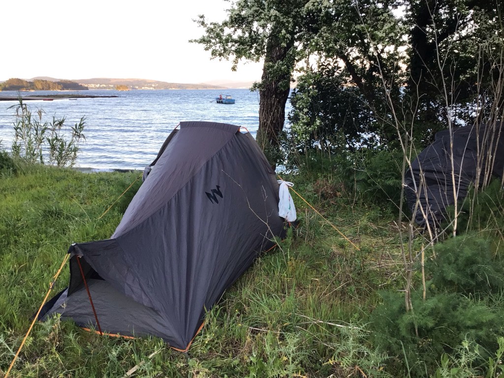 Bien m’en a pris. 8kms de montée, 8kms de descente ! Je suis fourbu lorsque j’arrive dans la baie de Boiro. L’heure avance et il me faut à nouveau trouver un bivouac. Je fais le tour de cette petite péninsule et déniche un coin tranquille pour passer la nuit. Je dîne assis sur les marches qui mènent à une petite plage. Je ne vais pas faire long feu ce soir. La nuit précédente a été courte et la journée fort longue …