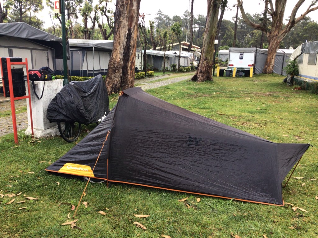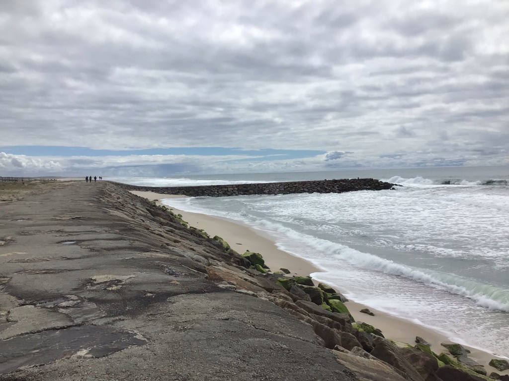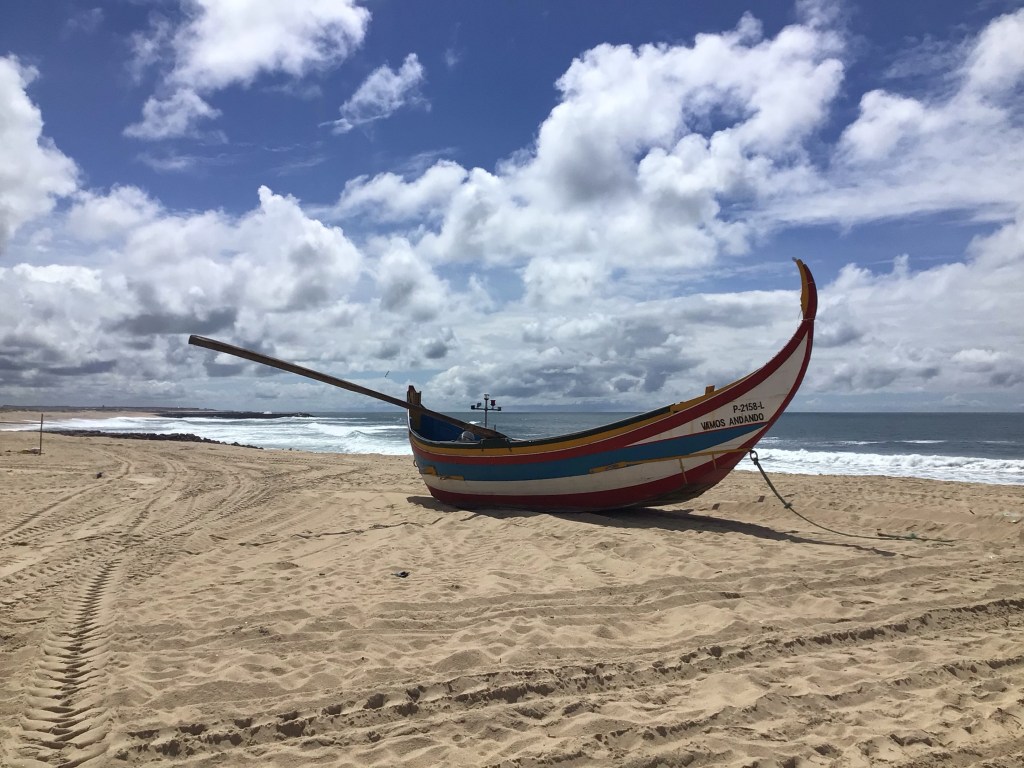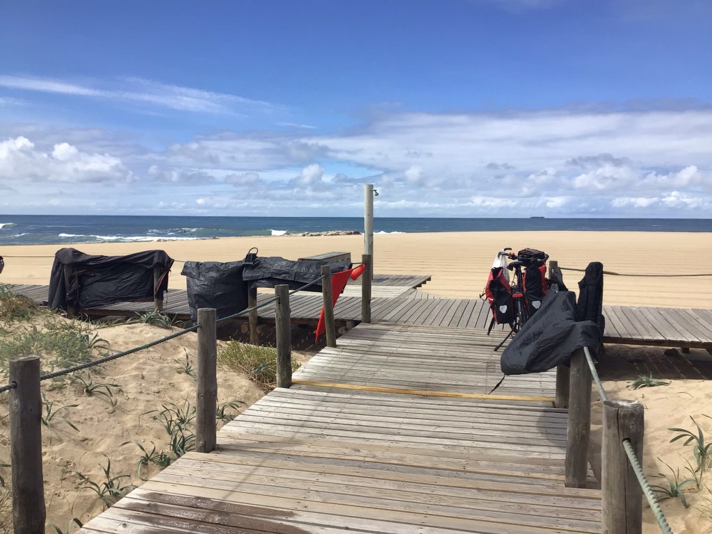 Je suis obligé de rentrer dans les terres et de suivre la N327 coincée entre la rivière, des marais et des cultures. C’est beaucoup moins folichon. Là, il faut débrancher le cerveau et pédaler. Je bifurque à Toreira pour faire une pause Schweppes en bordure de plage avant de trouver un endroit où me poser.