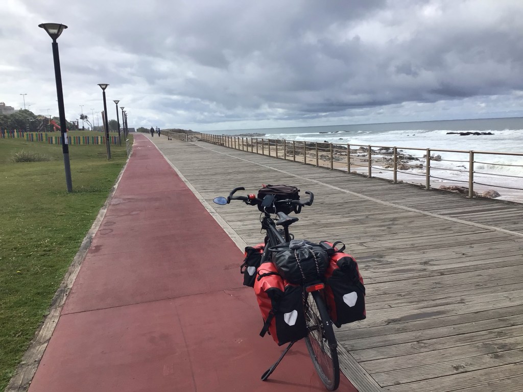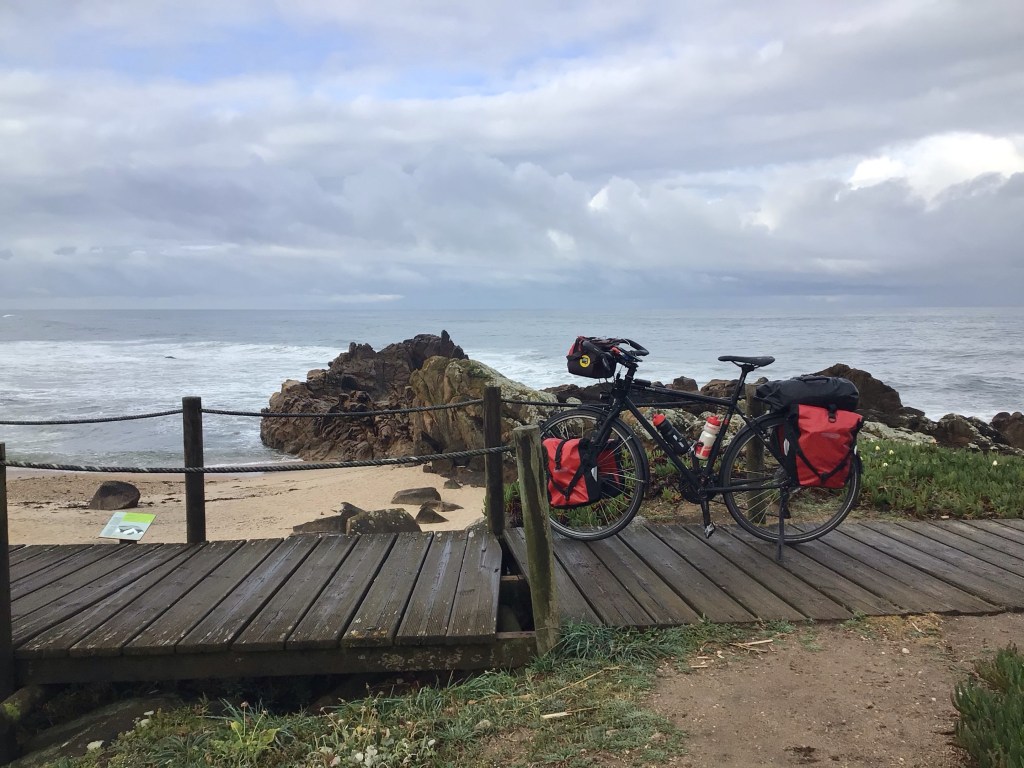 Bon trêve de plaisanterie, je sors enfin de Porto et retrouve la côte en suivant une magnifique piste cyclable au bitume rouge. Depuis le temps que je demande à nos politiques responsables de coloriser les pistes comme cela se fait dans tous les pays nordiques ! Cela assure la continuité, la sécurité et la visibilité du réseau. Les automobilistes visualisent mieux les intersections et les piétons également ce qui évite de marcher dessus et de créer des conflits d’usage. Mais bon, à force d’à force, peut-être qu’un jour cela se fera aussi sur Blagnac et ailleurs … On peut toujours rêver …