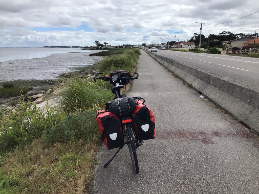 Il commence à faire faim. Je m’arrête le long d’un cheminement après avoir acheté quelques victuailles. J’en profite pour étendre toutes mes affaires trempées. Cette zone balnéaire semble assez cossue. La réaction des promeneurs promenant leur toutou est assez amusante. Pas un regard, pas un bonjour. Le clodo dénature le paysage !