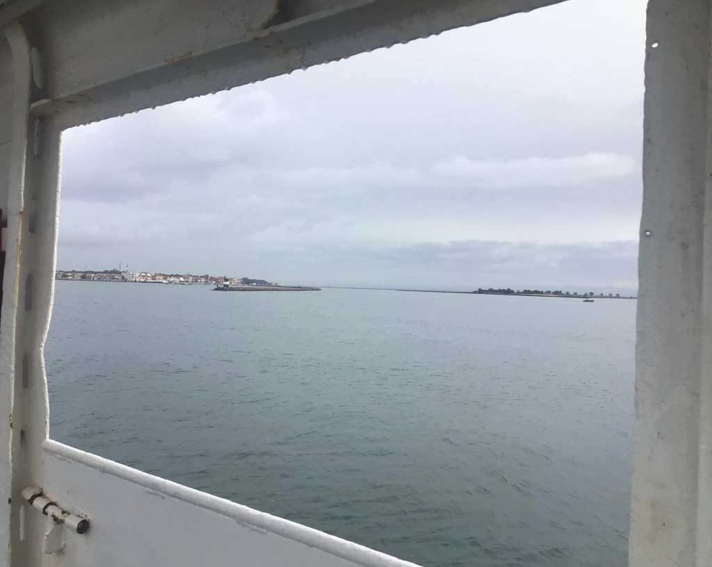 Peu de temps après, j’arrive à Sao Jacinto. Mais il me faut attendre le ferry pour traverser le Rio Vouga et rejoindre l’autre pointe à Barra. Je m’arrête dans un panaderia / pasteleria pour y prendre un café/croissant cannelle plus tôt que d’habitude. Le ferry arrive. J’embarque.
