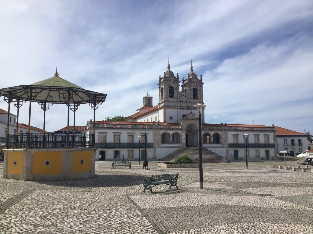 Il commence à faire faim. Je m’arrête dans une station balnéaire récente sans aucun charme Pedra do Ouro et m’installe dans un bar-snack pour recharger les batteries. L’assiette de frango est copieuse et je repars repu. Je continue sur la piste jusqu’à Nazaré. Après avoir visité la cathédrale qui est ouverte, je vais admirer le paysage du haut de la falaise.
