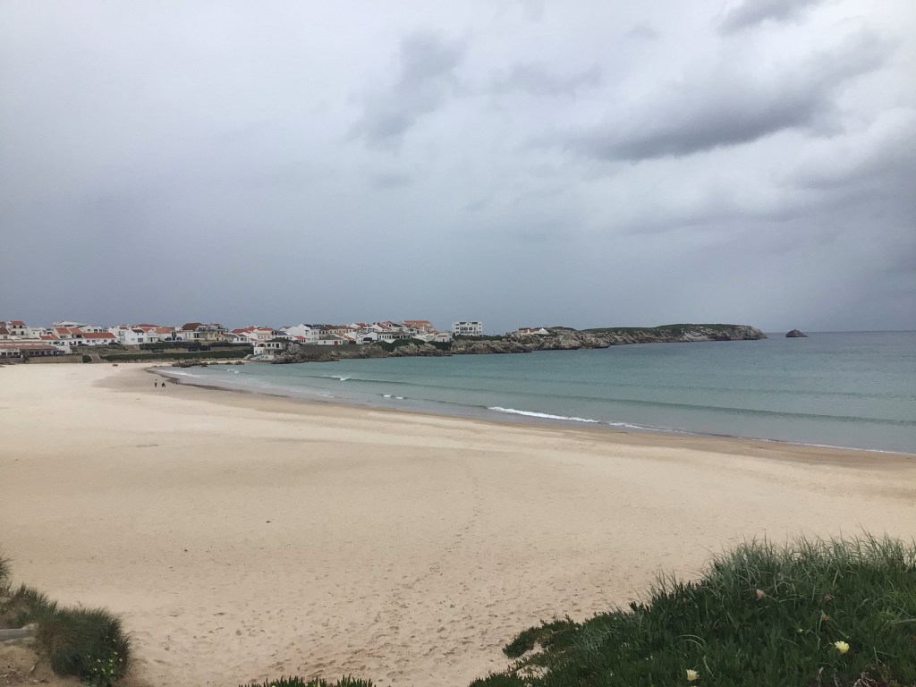 Arrivé à Baleal, nous nous arrêtons prendre un café / beignet dans un bar de surfeurs. Il est déjà midi. Le temps de finir notre encas, le ciel s’assombrit et le déluge s’abat à nouveau. Même les surfeurs sortent de l’eau. Nous décidons de déjeuner sur place en attendant que ça se calme : hamburger/bière/café après le beignet.