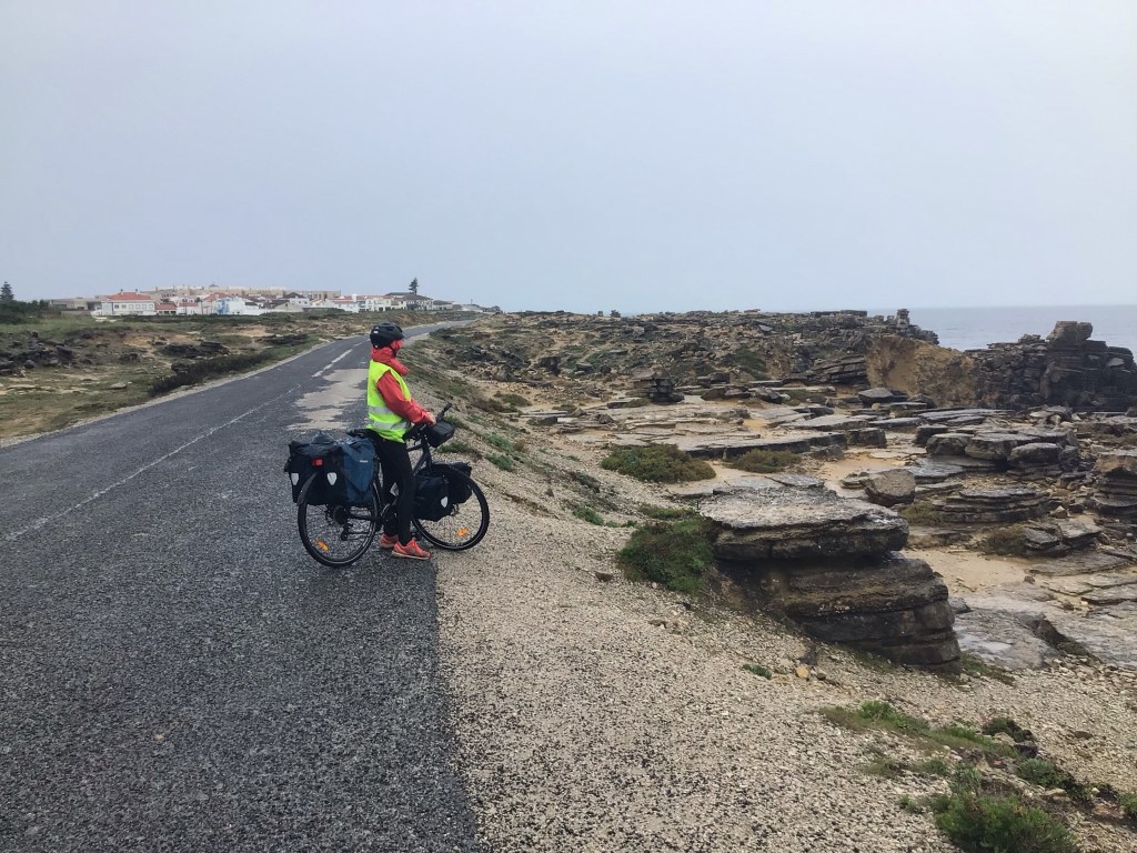 … lorsque je suis interpelé par une cyclotouriste ! On commence à se parler en anglais et, comme d’hab’ avec mon super accent, elle s’exprime en français. Et oui, c’est une petite grenobloise. Elle se nomme Aline, 22 ans, en césure de 4é année de sciences-po (master culture). Elle vadrouille à travers le Portugal. On repart ensemble en papotant de nos parcours respectifs. Par contre, la météo se dégrade à nouveau et la bruine refait son apparition.