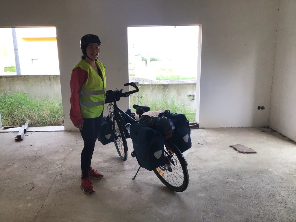 J’ai dormi comme un loir. Réveillé vers 7h00 alors qu’Aline est déjà préparée. Elle n’a pas beaucoup dormi. Je range mes affaires et nous partageons notre petit déj’. Puis nous quittons notre maison de fortune pour reprendre chacun sa route. En effet, Aline a décidé de prendre le train pour descendre direct sur Lisbonne où elle a réservé un WarmShower. Sacré jeune femme au tempérament bien trempé qui a déjà pas mal bourlingué malgré son jeune âge, à la recherche de rencontres et qui est sacrément mâture. Bonne route le « homard rouge » !