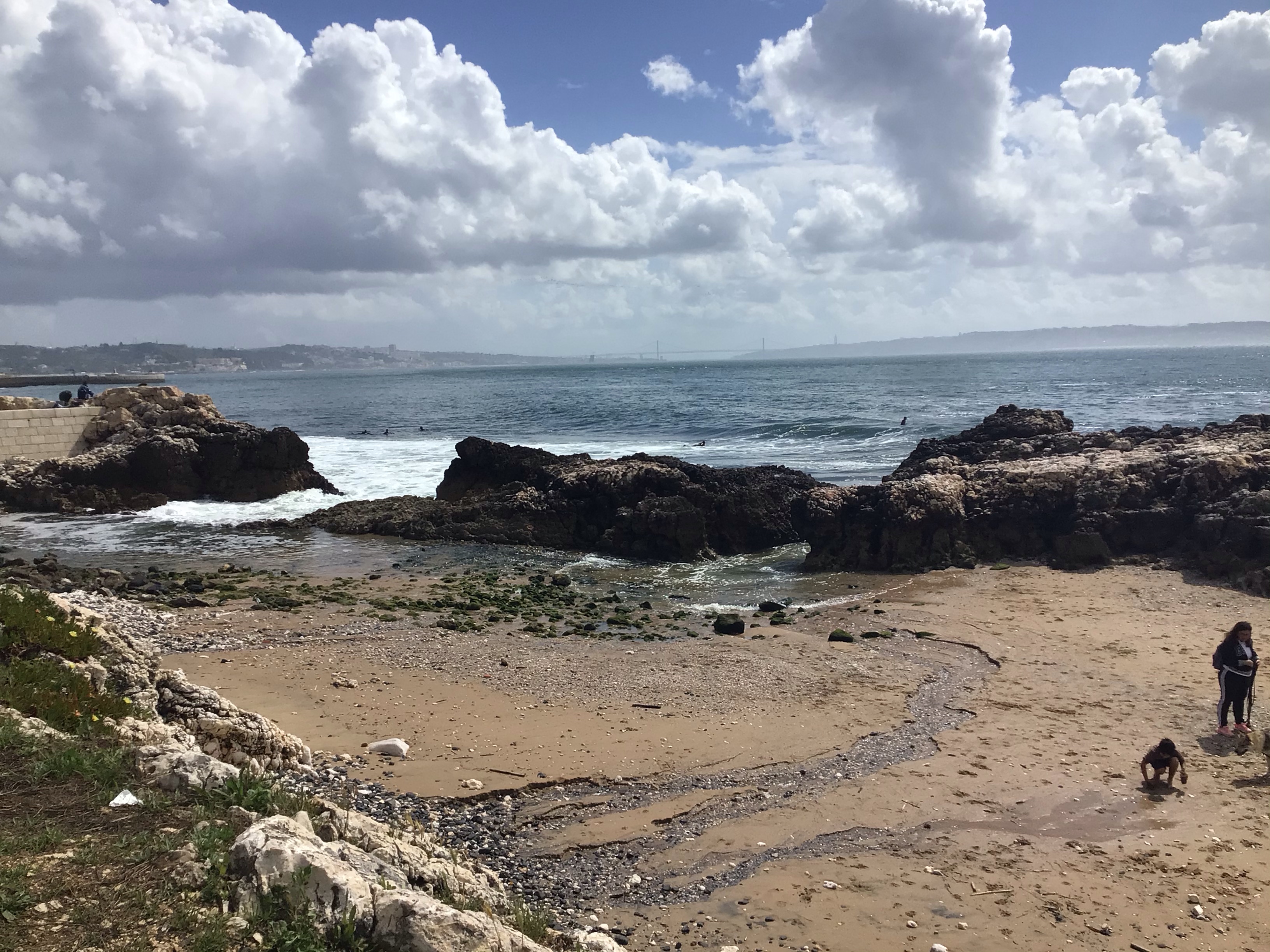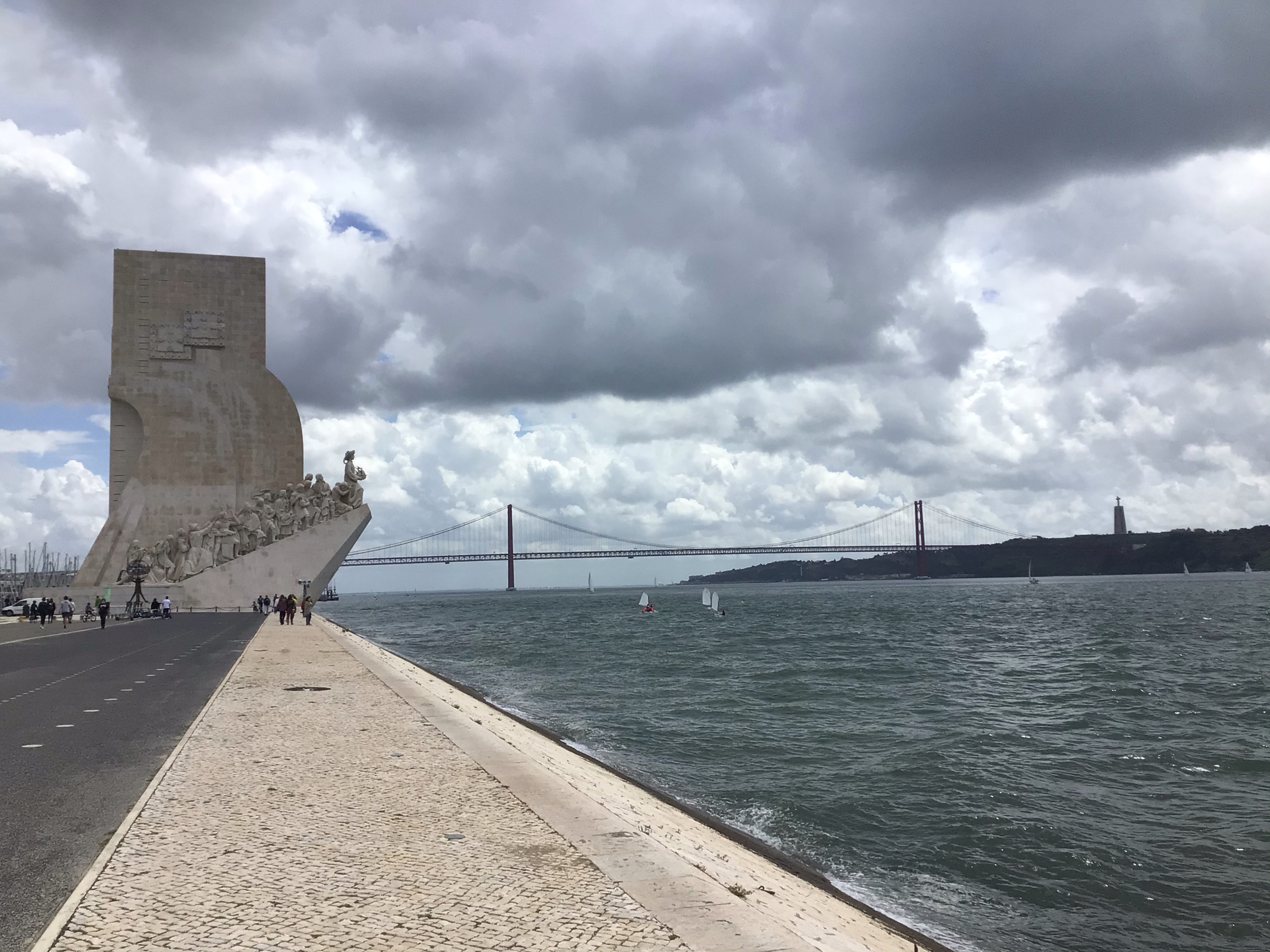 J’aperçois au loin le célèbre pont qui enjambe le Tage. Je n’ai qu’à suivre la piste en évitant les obstacles en tout genre.