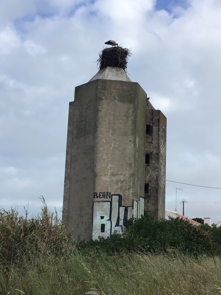 Au milieu de matinée, je m’arrête à Melides dans un tout petit café tenu par une mamie toute petite et fripée. Il n’y a évidemment pas de wi-fi. Elle a l’air toute surprise de me voir ici. Nous essayons de communiquer mais ce n’est pas évident. Je reprends ma route vers Simes. La végétation m’indique que j’approche de la Méditerranée. Cependant, alors que je me dirige vers l’océan, de gros nuages apparaissent au loin. Je continue mon chemin en suivant une route … qui longe l’autoroute démarrant à Vila Nova de Santo André. Je profite de l’occasion pour passer le bonjour à mon oncle Dédé qui a dû rentrer de sa villégiature thaïlandaise.