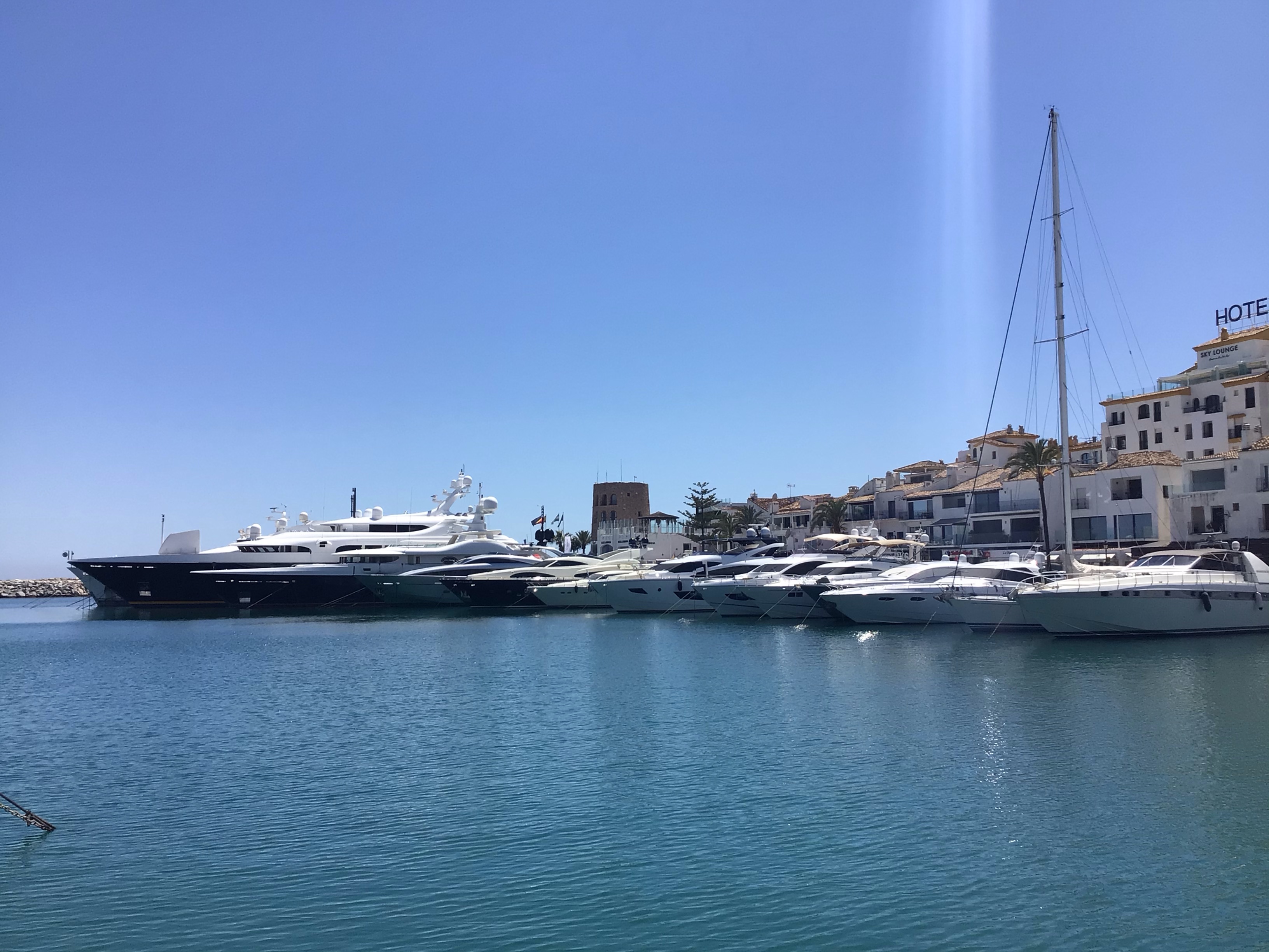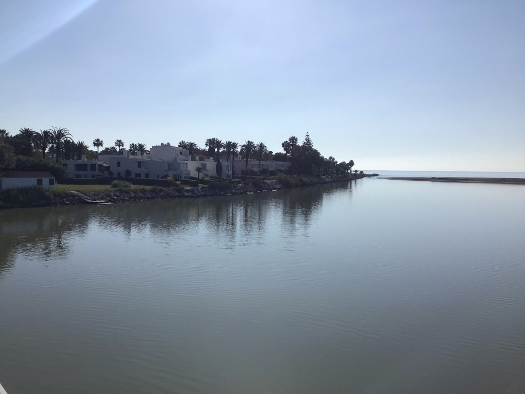 Au bout d’une heure de route, je tourne à droite direction Sotogrande. Et là, le contraste est vraiment saisissant. Entre ce que je viens de traverser hier, notamment des quartiers à la limite de bidonvilles, et l’endroit où j’arrive … Déjà, il y a une barrière avec un vigile dans sa guérite qui surveille l’entrée de ce quartier. Je passe et j’arrive dans un un endroit incroyable. Des avenues à 2*2 voies sans aucune circulation bordées de magnifiques demeures. Un autre monde. Peut-être celui des premiers de cordée de notre cher Président Jupitérien. Les seules personnes que je croise sont des artisans à travailler en bas de l’échelle.