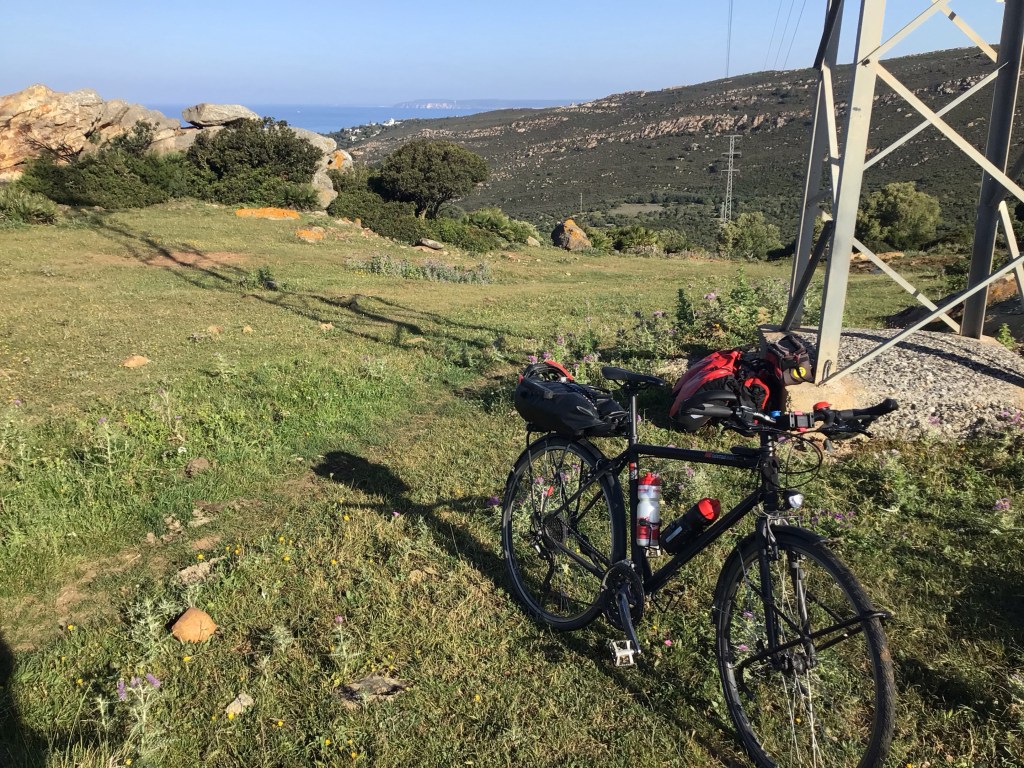 Même si je ne dépasse pas le 10km/h. En effet, ça grimpe sans discontinuer jusqu’au col à 340m. Ça redescend. Et puis rebelote, nouvelle montée jusqu’à un nouveau col à 320m ! Et, enfin, belle descente vers Algeciras avec vue sur Gibraltar.