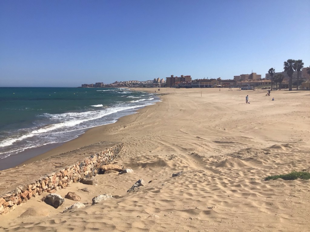 Vers 13h, je m’arrête pique-niquer à Los Narejos au bord du lagon. C’est incroyable le nombre d’habitations inoccupées. A ce sujet, Angélique me disait que beaucoup d’appartements à La Manga appartenaient à des madrilènes et que, à cause du confinement par région, il ne pouvait pas venir.