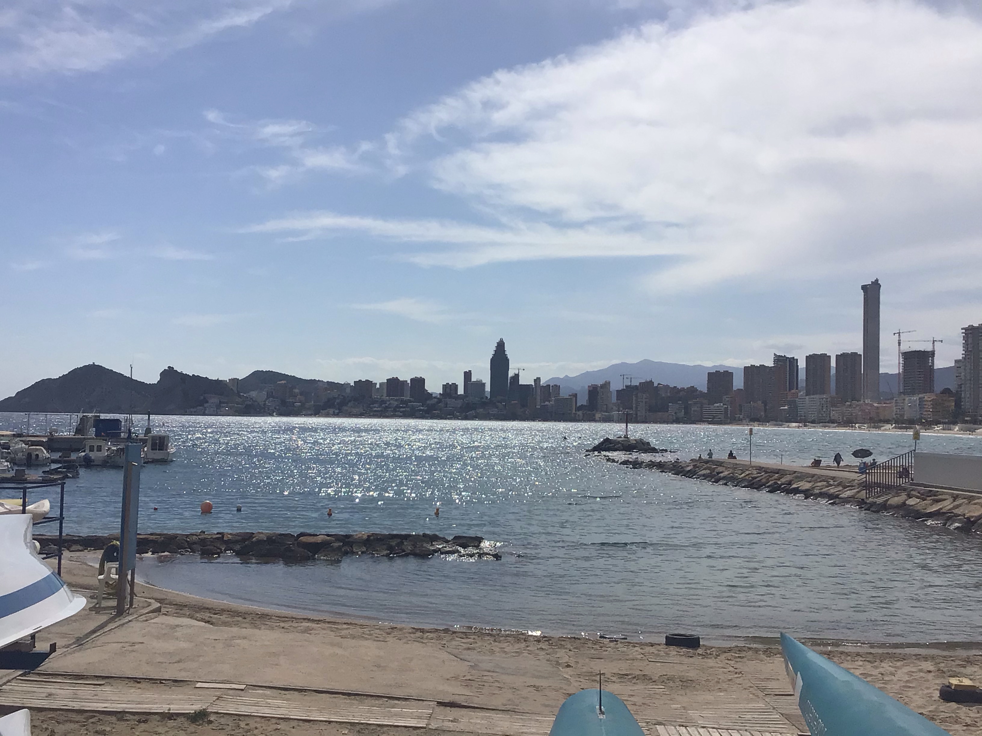 Je poursuis ma route jusqu’à Benidorm. Je ne sais plus comment je connaît le nom de cette station balnéaire où je n’ai jamais mis les pieds. Peut-être par le cyclisme où des équipes pro viennent y faire des stages ? Je ne sais plus. Mais c’est tellement hallucinant ! Un mini-Manhattan en construction … Il y a des tours partout.