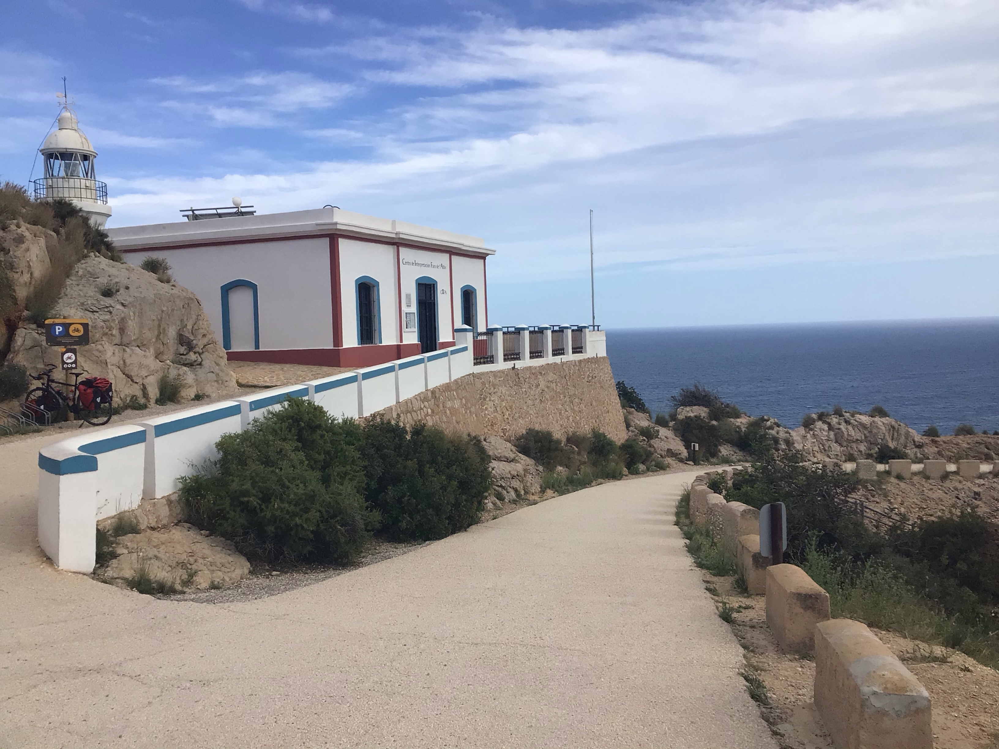 L’heure avance et il me faut songer à trouver un bivouac pour la nuit. Les campings sont immenses et je n’ai pas envie de me retrouver parquer. Je regarde ma carte. Entre les stations balnéaires, il y a le Parc Natural de la Serra Gelada. Je devrais bien trouver un endroit où y bivouaquer. Je monte jusqu’au phare de l’Albir. La vue est à couper le souffle.