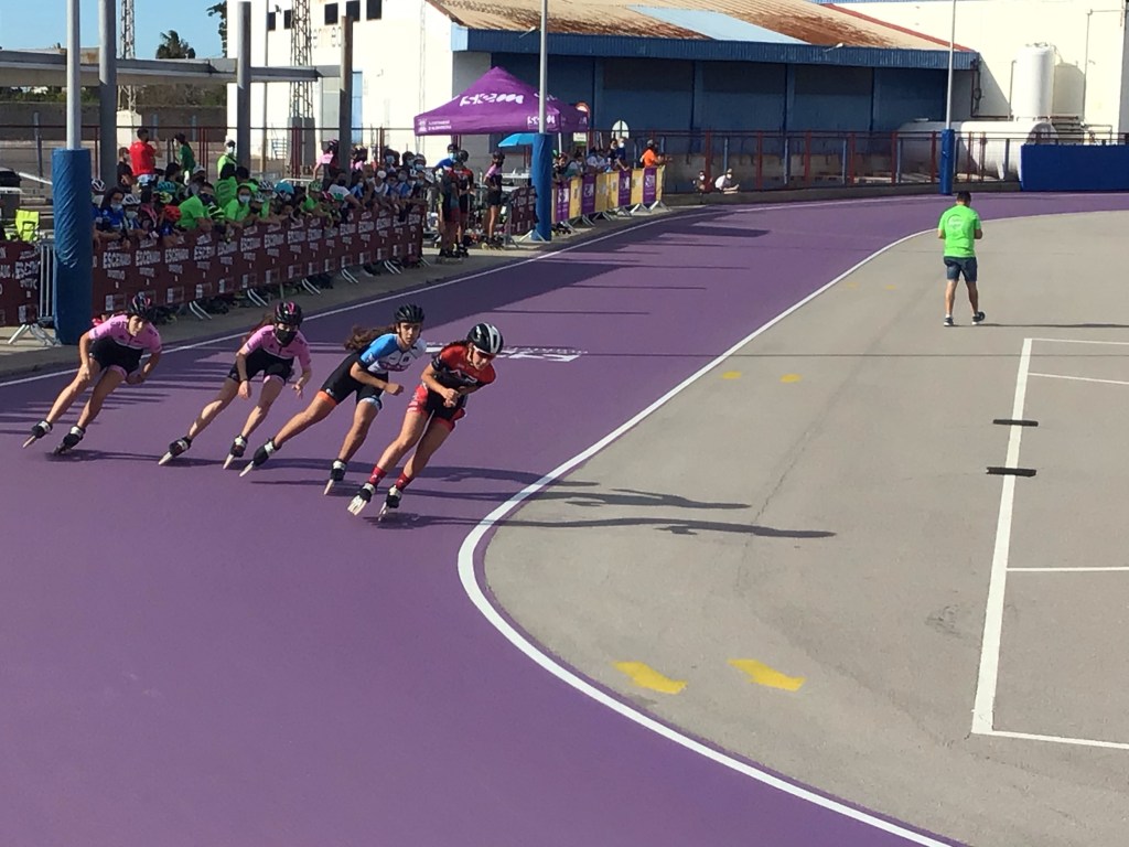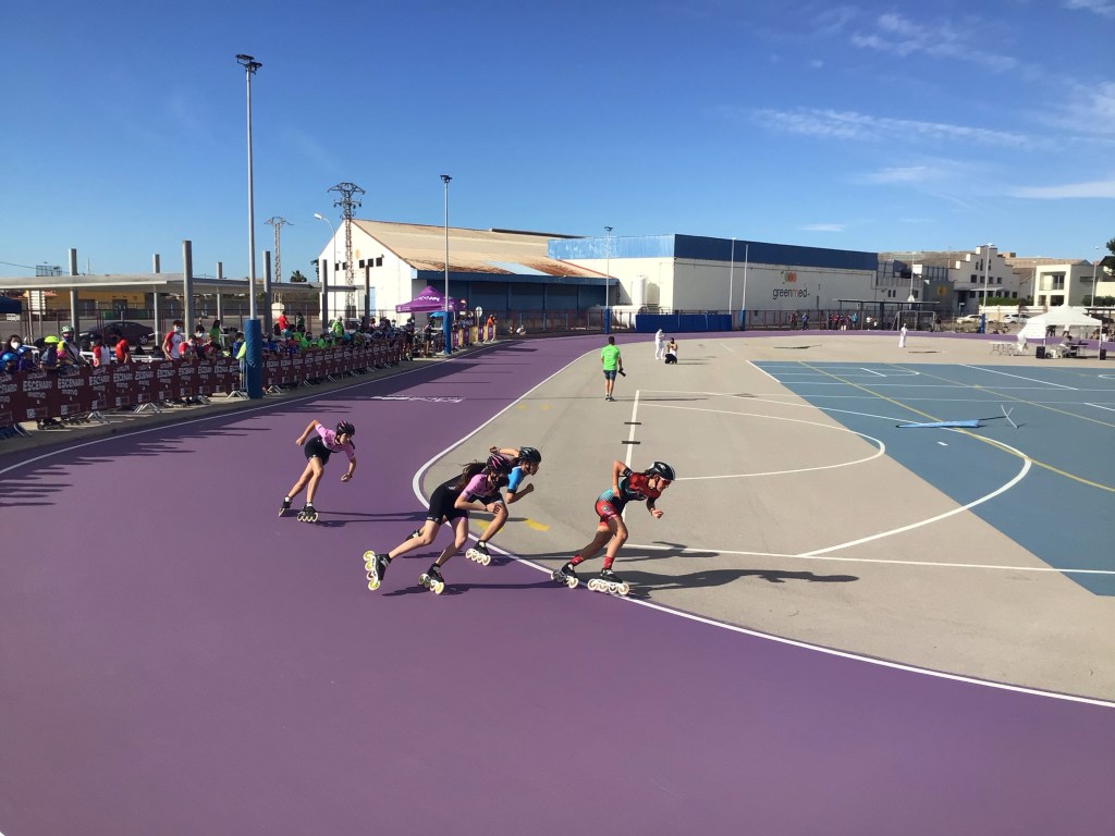 Je grimpe en suivant des pistes cyclables jusqu’aux contreforts des reliefs. Comme chaque dimanche matin, ça sporte très fort de tous les côtés malgré la chaleur déjà présente. Il faisait déjà 20°c à 8h00. D’ailleurs, à l’entrée de Castello, je remarque un attroupement. Je m’y dirige. Il s’y tient une compétition de rollers. Les jeunettes envoient du lourd. 2 tours et demi de piste soit 1 kms à bloc. Les séries s’enchaînent mais je dois y aller.