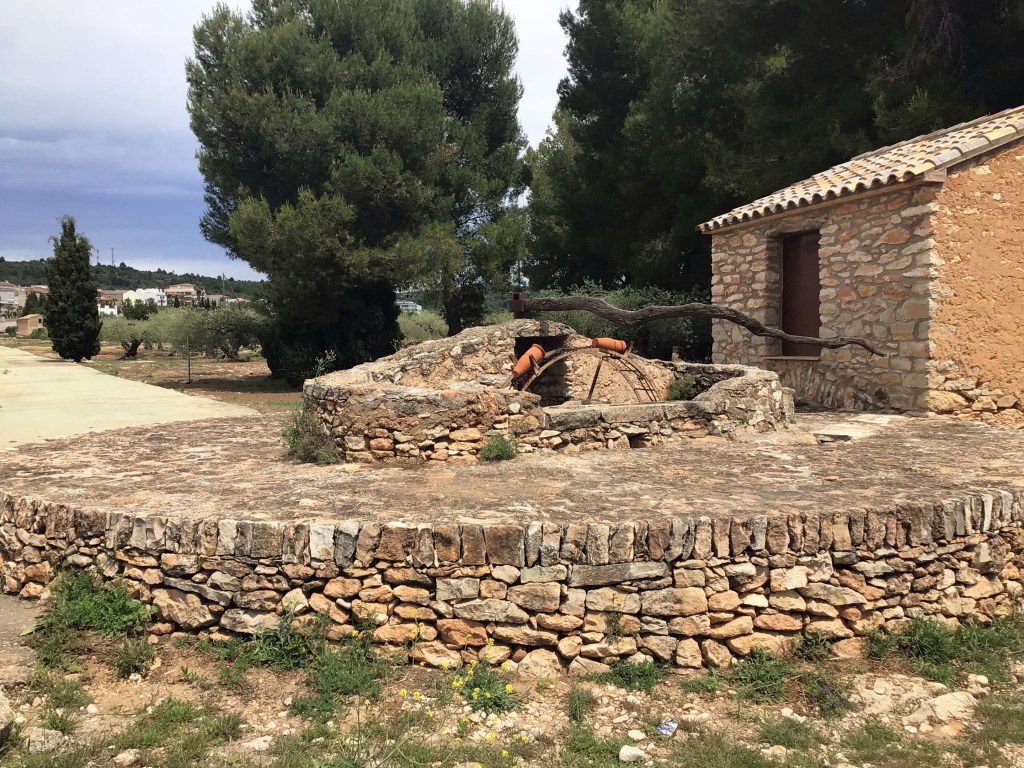 A Vall d’Alba, sur la CV-15, je tombe sur un moulin à eau avec ses godets en terre cuite. Il y a tout un réseau pour irriguer les immenses plantations.