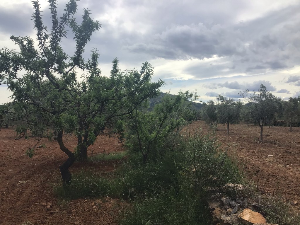 Je traverse ensuite d’immenses oliveraies et amanderaies. Je m’arrête aussi pour goûter un fruit que je ne connais pas. Il a la forme et la taille d’un abricot mais le goût d’un fruit exotique avec 3 gros pépins au milieu. De plus, je les cueille bien mûr. C’est un délice.