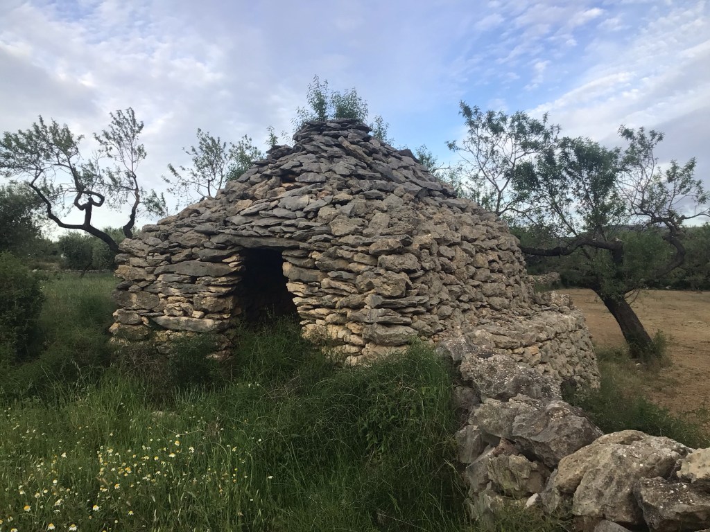 Par contre, entre mon repas et ma sieste, la journée file vite et il me faut penser à trouver un bivouac avant la nuit. Dans ce coin perdu, il devrait bien y avoir des maisons abandonnées ou, à défaut, un endroit pour plante ma tente ! Je branche mes radars et sans même trop chercher je repère une borie (« petite hutte ronde en pierres sèches dans le midi de la France ») au bord d’un champ. Je vais inspecter les lieux : aucune crotte humaine avec une partie d’un rouleau de PQ qui traîne, aucune canette de bière ou de coca, aucun tag sur les pierres.