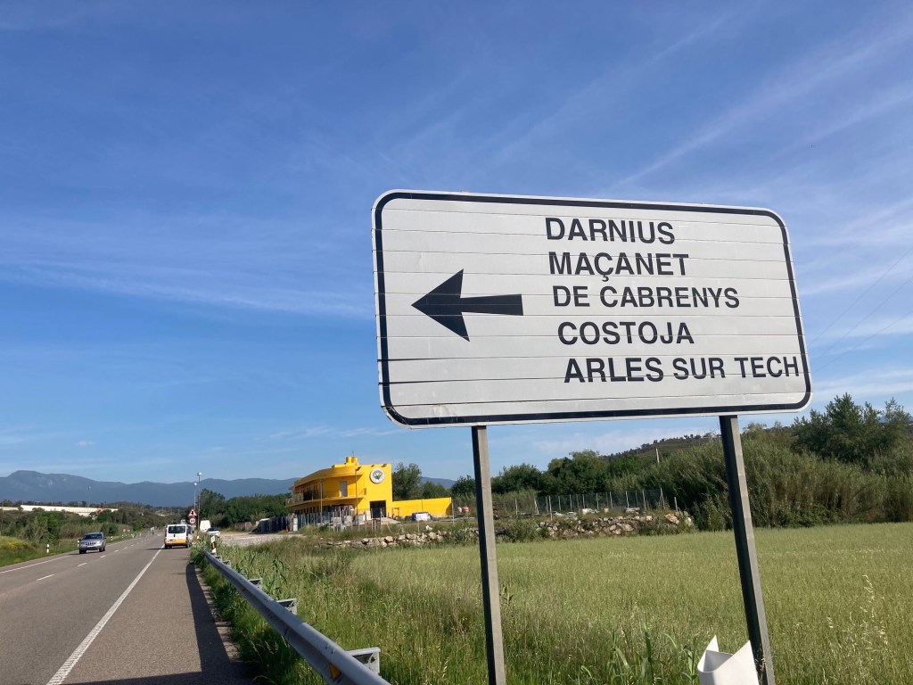Après avoir plié mon bivouac et au moment où je rangeais mes sacoches, une voix anglaise m’interpelle. C’est une jeune hollandaise qui randonne à travers le pays et qui a dormi au village. Elle montait admirer la Tour. Nous discutons un moment mais il me faut reprendre la route. Je retrouve donc la N-11 qui m’emmène jusqu’à la frontière. Par contre, j’évite de prendre la route de Arles/Tech indiquée dans la vallée qui me ferait passer par le col de Coustouges. Une route certainement magnifique mais que je ferais peut-être un jour sans les sacoches !