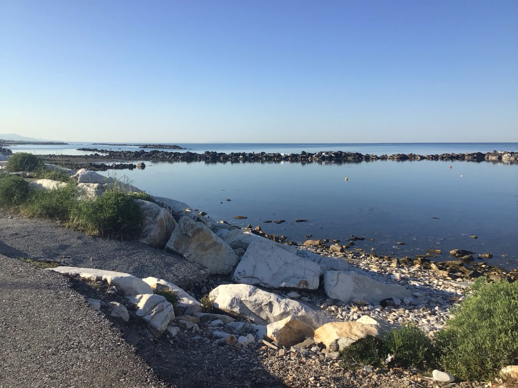 J’emprunte la piste cyclable qui longe la mer. C’est une succession de stations balnéaires qui s’enchaînent les unes après les autres pendant une vingtaine de kilomètres. Sur ma droite, j’aperçois la mer cachée par des clubs privés avec ses alignements de chaises longues qui attendent leurs corps bronzés, sa piscine, son terrain de volley et son bar-restau. Les commerces ouvrent à peine. Il me faut être vigilant pour éviter les piétons qui traversent sans regarder, les joggeurs matinaux qui préfèrent la piste au trottoir et les autres cyclistes qui déambulent tranquillement. Mais le temps passe vite avec ce spectacle.